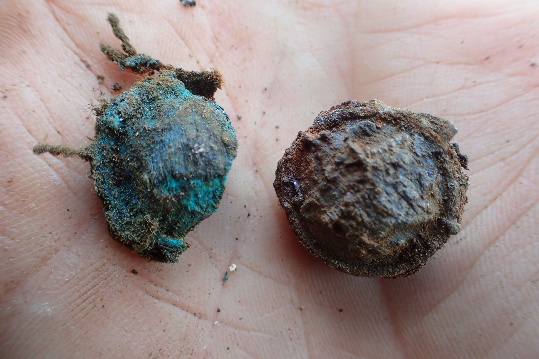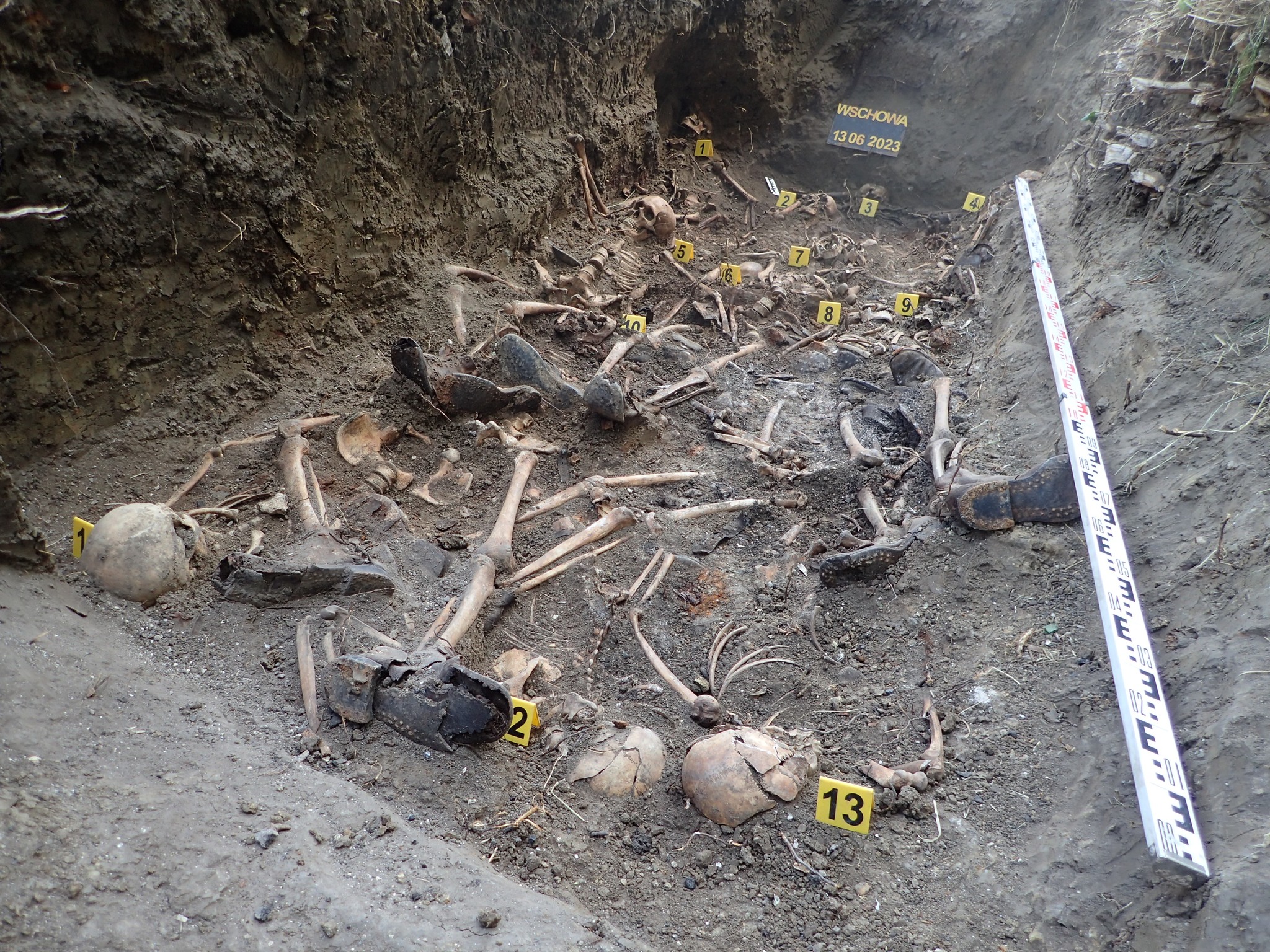 Według relacji nieżyjącego już mieszkańca miejscowości, który określił lokalizację mogiły, pochowano w niej trzech żołnierzy Wehrmachtu. We wskazanym miejscu odkryto jednak długi na ponad cztery metry pochówek masowy, w którym wspólnie pochowano poległych w walce żołnierze wojsk III Rzeszy i ZSRR. Odkryty obiekt stanowi tak zwany „grób mieszany”, czyli taki, w którym wspólnie pochowano żołnierzy obu walczących stron. W takim wypadku prace ekshumacyjne wymagają szczególnej ostrożności przy interpretacji oraz precyzji w trakcie podejmowania szczątków. Kluczową rolę w tym wypadku stanowią przedmioty rejestrowane przy poległych, a w szczególności guziki mundurowe i wojskowe obuwie. Na tej podstawie można określić pochodzenie żołnierzy. Odkryte artefakty pozostają w dyspozycji Pracowni „Pomost”.
