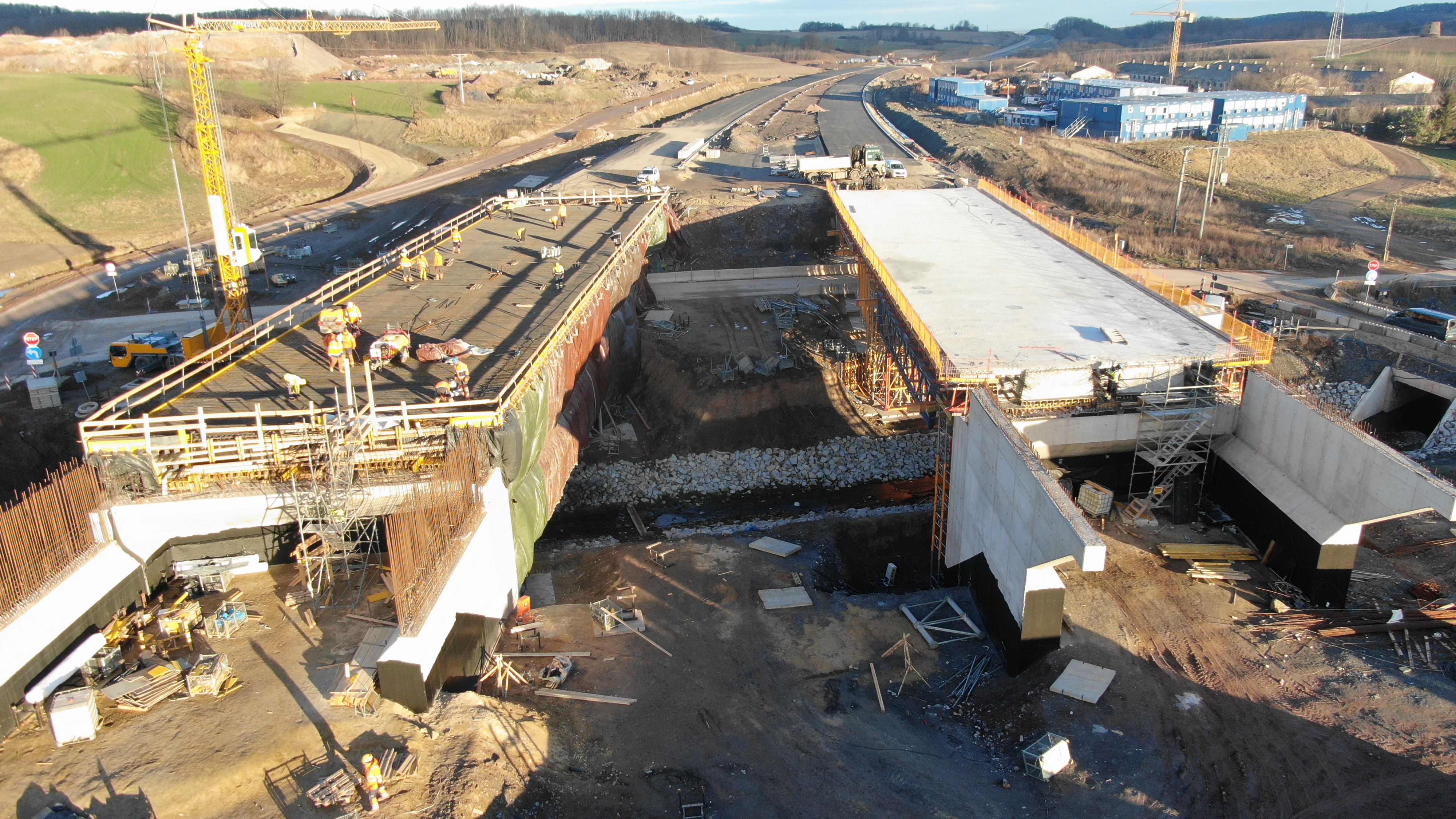 Na postęp robót na obiektach mostowych i drogach mają wpływ panujące warunki atmosferyczne. Jednak mimo przerwy zimowej niektóre prace są kontynuowane. Ukończyliśmy prace nad stabilizacją podłoża, wycinką i karczowaniem drzew i krzewów oraz rozbiórką budynków. W zakresie robót branżowych można także zauważyć ukończenie sieci energetycznych oraz kanalizacji sanitarnych.
