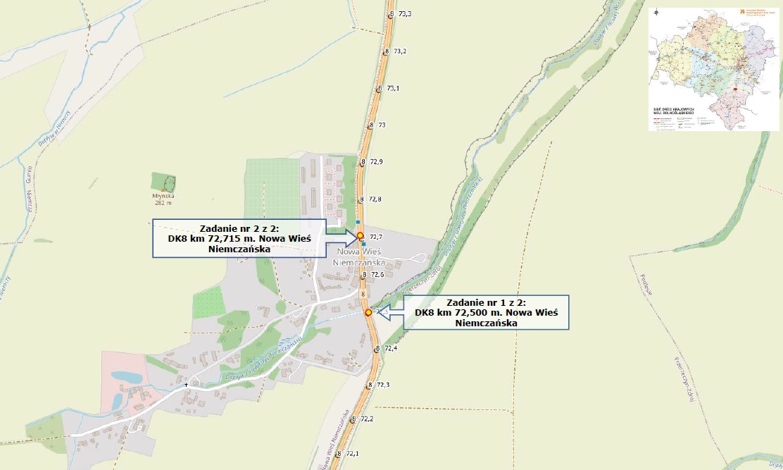 W Nowej Wsi Niemczańskiej wykonamy m. in. doświetlenie dwóch przejść dla pieszych w ciągu głównym DK8, ułożymy płytki dla osób niewidomych i niedowidzących. Nastąpi korekta lokalizacji jednego przejścia dla pieszych oraz budowa ok. 30 m chodnika wraz z ogrodzeniem. Na oferty czekamy do 10 listopada br. Szczegóły przetargu znajdują się na PLATFORMIE ZAKUPOWEJ.