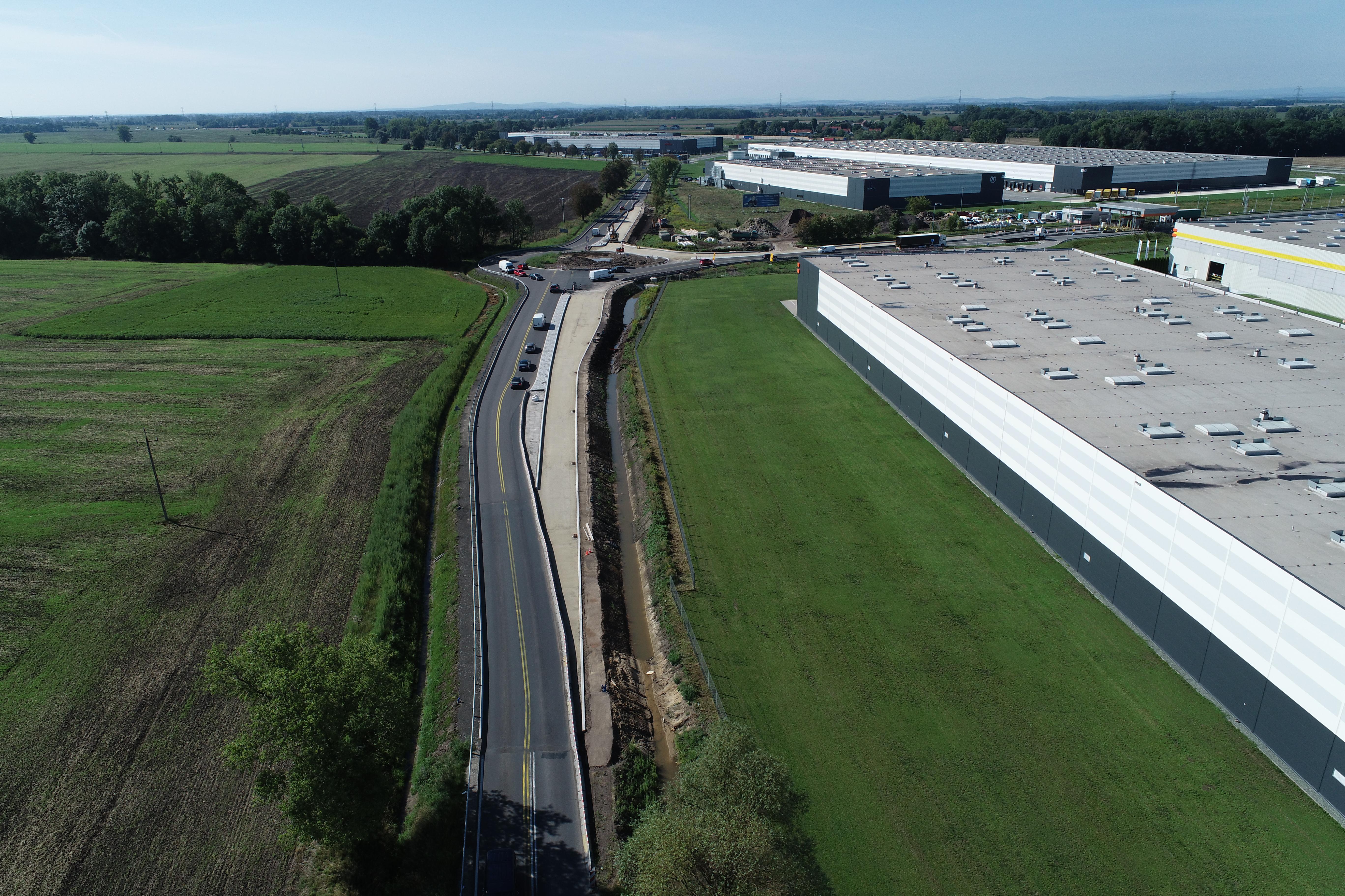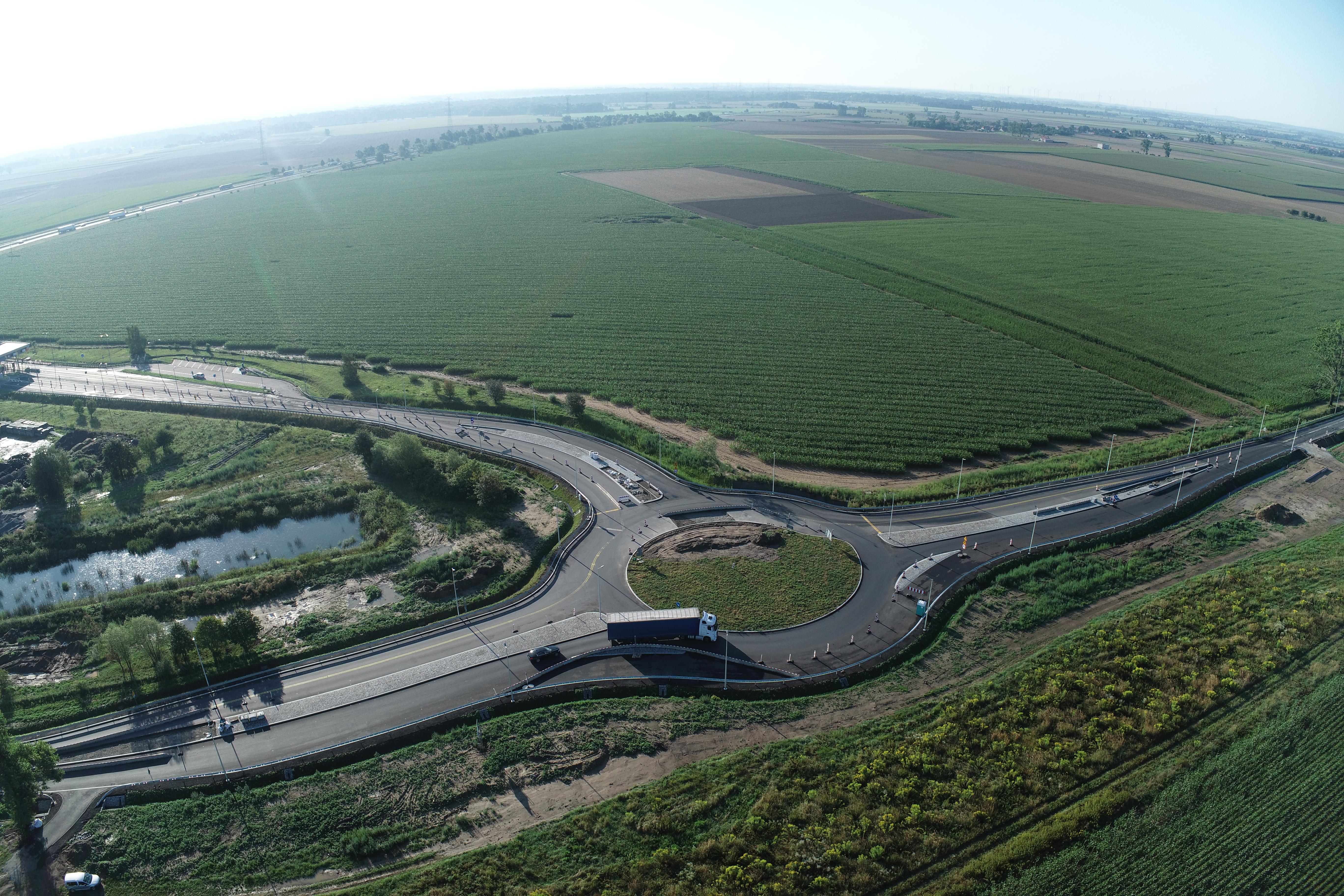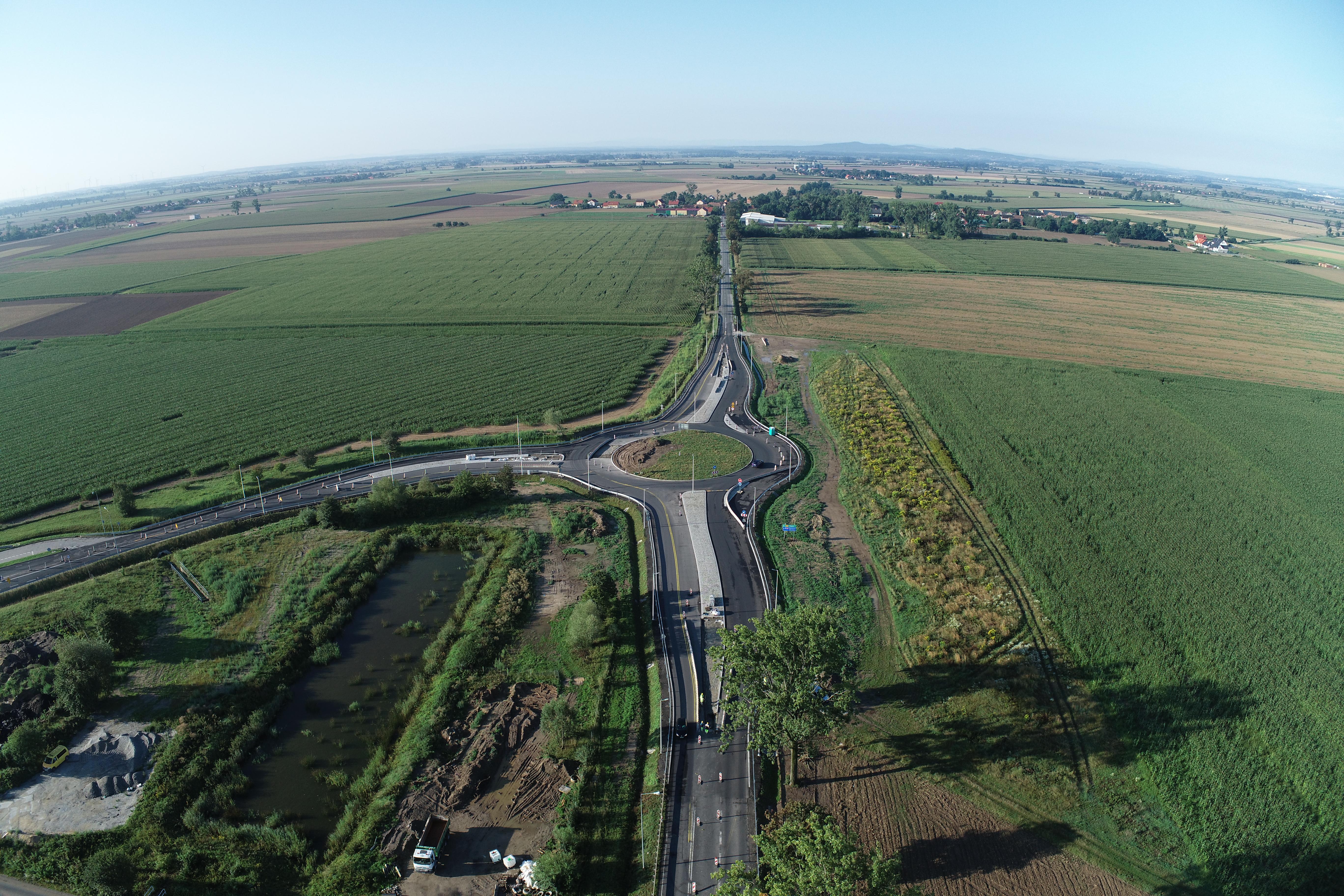 Zostały wykonane wszystkie warstwy konstrukcyjne niebitumiczne na całości zadania tj. warstwa mrozoochronna, warstwa stabilizacji dowożonej, podbudowa z kruszywa. Wykonawca przygotowuje się do układania nawierzchni bitumicznych oraz wykonuje wykopy rowów wraz z zahumusowaniem i obsiewem. Trwają także prace brukarskie na wyspach.