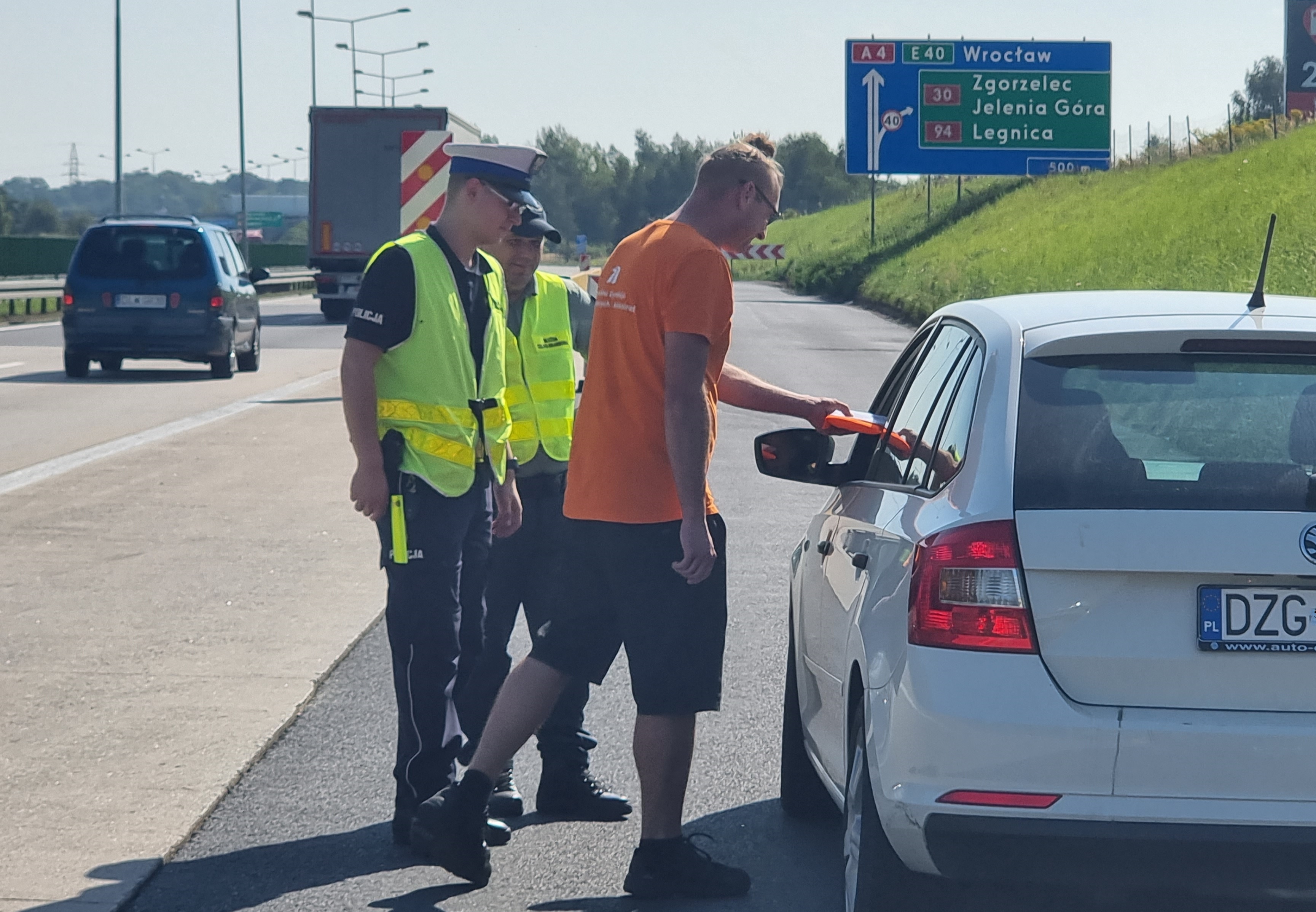 Wspólnie z policjantami z Wydziału Ruchu Drogowego Komendy Powiatowej Policji w Zgorzelcu oraz funkcjonariuszami z Urzędu Celno-Skarbowego w Zgorzelcu przeprowadziliśmy działania profilaktyczne „Bezpieczna A4”. Celem akcji było zwrócenie uwagi kierowcom na podstawowe zasady bezpieczeństwa i przypomnienie, jakich niebezpiecznych zachowań należy unikać, by nie doprowadzić do zdarzenia.