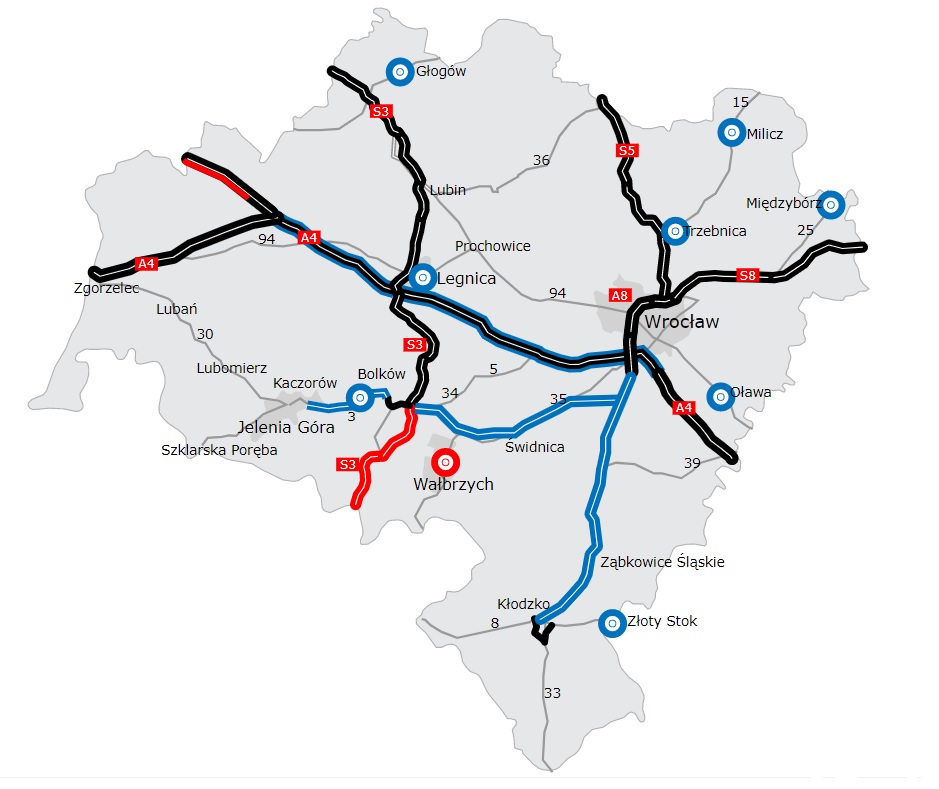 Autostrada A4 od Krzyżowej do Wrocławia i droga ekspresowa S5 od Sobótki do Bolkowa