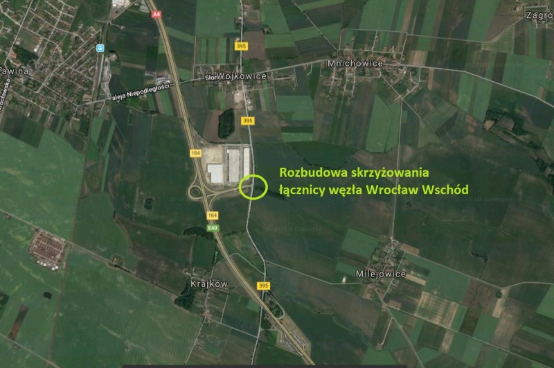 W ramach zadania rozbudowane zostaną skrzyżowania łącznic węzłów Brzezimierz (połączenie z drogą wojewódzką 396) i Wrocław Wschód (połączenie z drogą wojewódzką 395). Skrzyżowanie zostanie rozbudowane i zmieni się w rondo.
