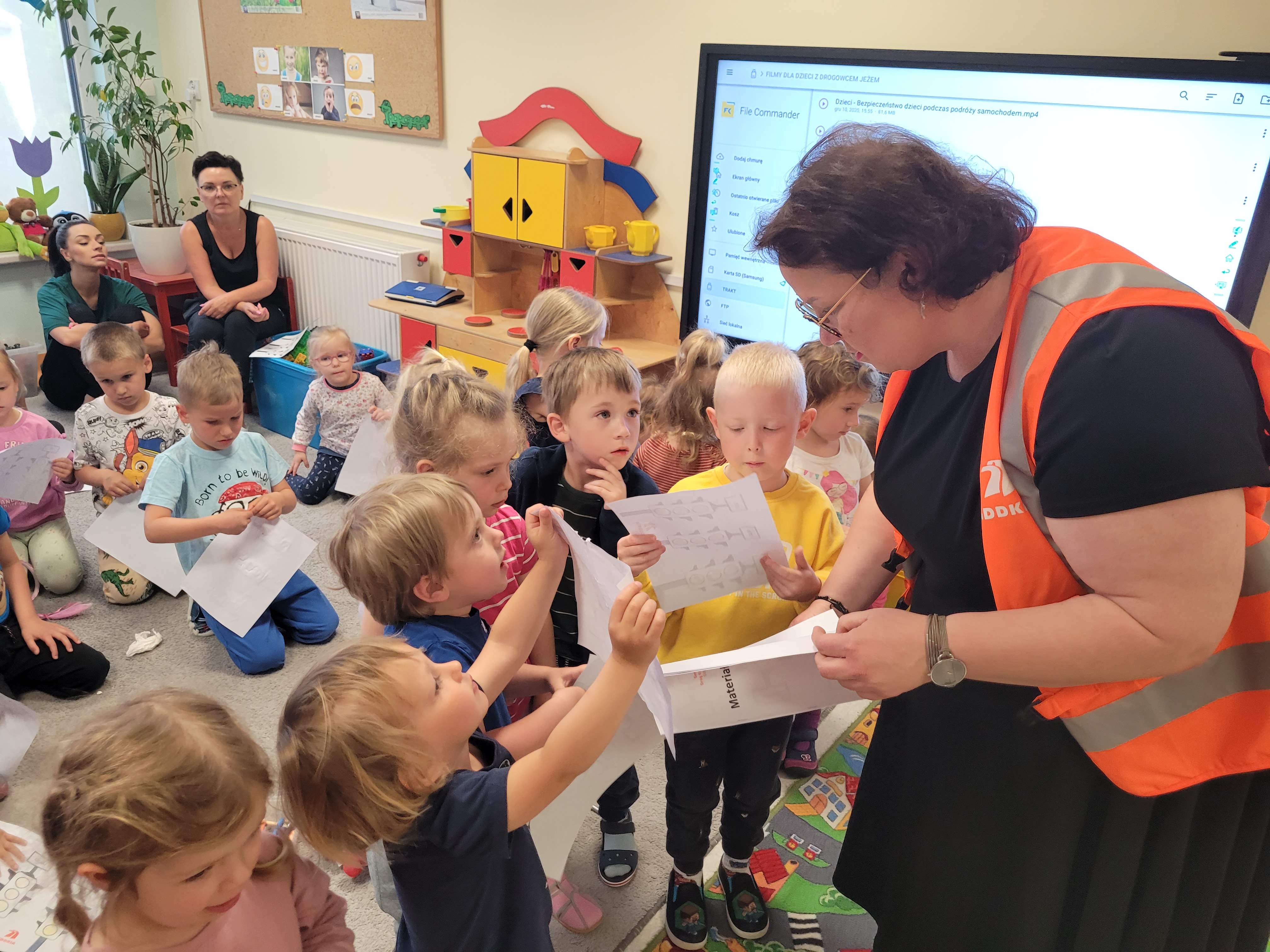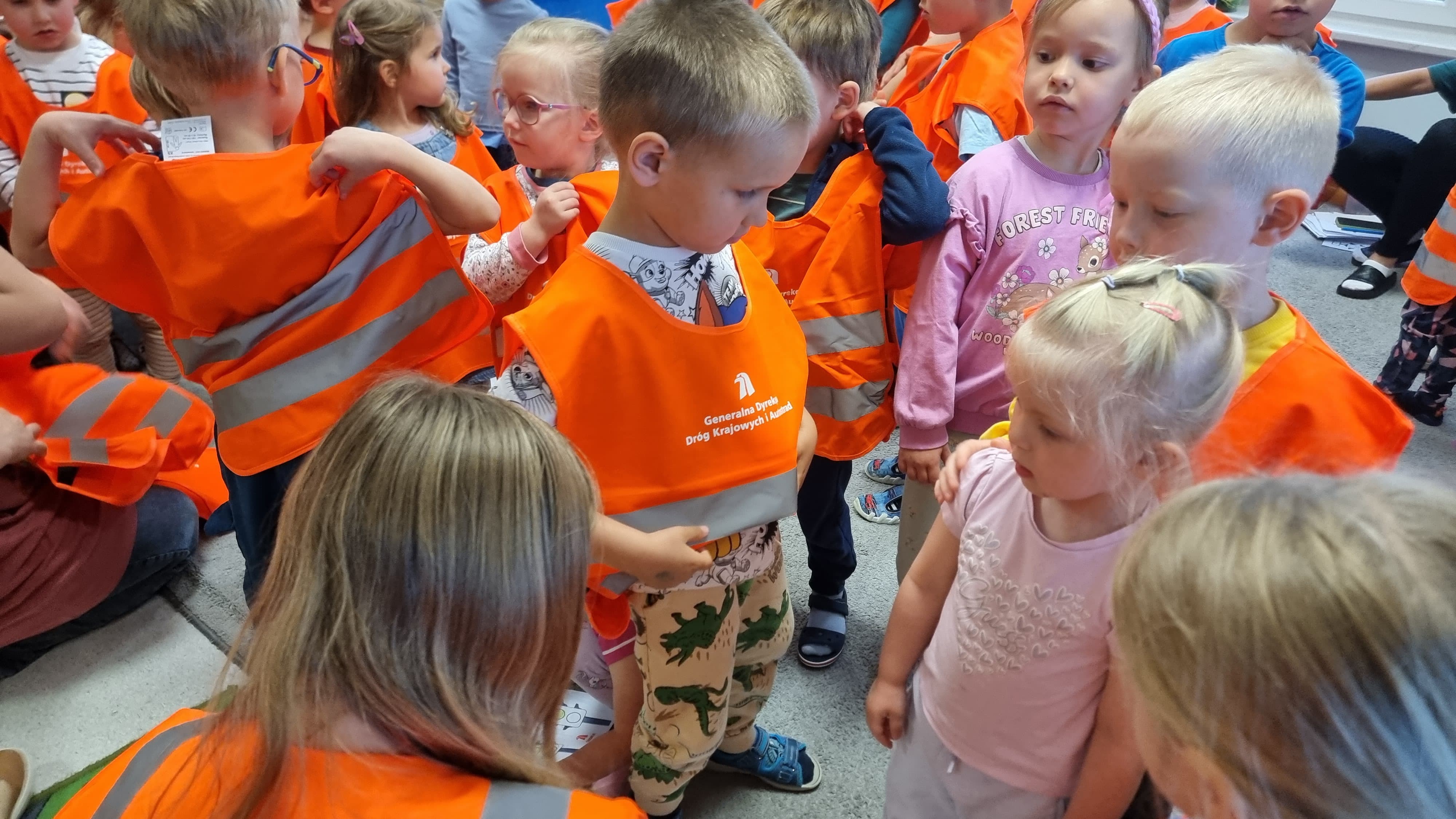 Na spotkaniach edukacyjnych zapoznaliśmy dzieci z zasadami bezpieczeństwa, w szczególności skupiając się na prawidłowym poruszaniu się po drogach. Rozmawialiśmy o pracy drogowców w GDDKiA, odpowiednim zachowaniu podczas przechodzenia przez jezdnię i podczas jazdy samochodem oraz o tym, dlaczego noszenie odblasków jest ważne. Atrakcją podczas drugiego dnia zajęć była możliwość wejścia do radiowozu policyjnego. Na zakończenie, po wspaniałej aktywności, wszystkie przedszkolaki otrzymały kamizelki odblaskowe a uczniowie klas 0-3 elementarze z Drogowcem Jeżem. Każdy dostał również materiały edukacyjne dotyczące bezpieczeństwa.