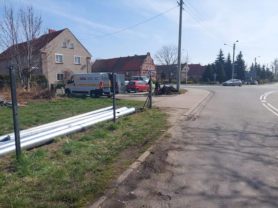 Wykonawca rozpoczął roboty przy przewiertach w celu ułożenia kabli energetycznych pod drogą. Prowadzi także wykopy pod fundamenty słupów sygnalizacji świetlnej. Roboty prowadzone są poza drogą i nie generują utrudnień w ruchu. Czasowe utrudnienia mogą wystąpić w kolejnym etapie prac, gdy będą montowane słupy oświetleniowe.