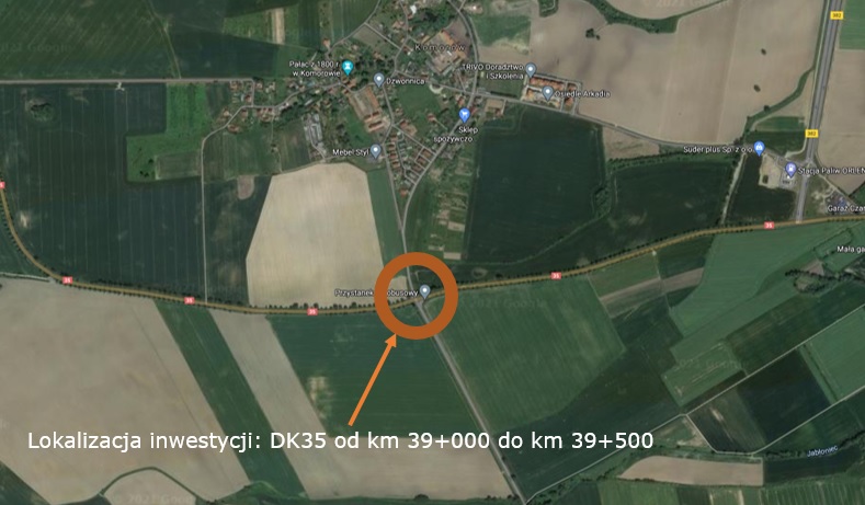 Ogłosiliśmy przetarg na wykonanie dokumentacji projektowej na rozbudowę skrzyżowania drogi krajowej nr 35 z drogą powiatową nr 2911D koło Komorowa w powiecie świdnickim. Termin składania ofert do 15 marca 2022 r. do godziny 9:30.