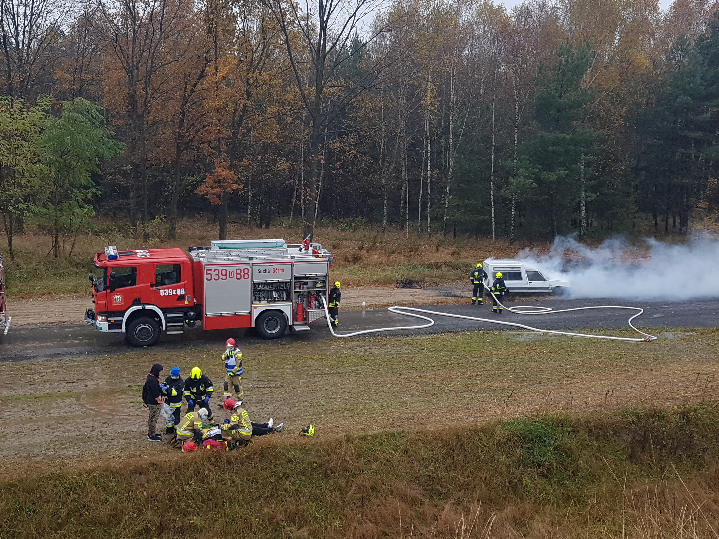 Ćwiczenia przewidywały również sytuację, w której z jednego z uszkodzonych pojazdów wydostaje się poszkodowany, który poszukiwany jest listem gończym. Policja przeprowadziła skuteczny pościg za uciekinierem. Droga pozostała zablokowana przez kilka godzin, do czasu zakończenia akcji ratowniczo-gaśniczej oraz uprzątnięcia terenu przez służby drogowe.