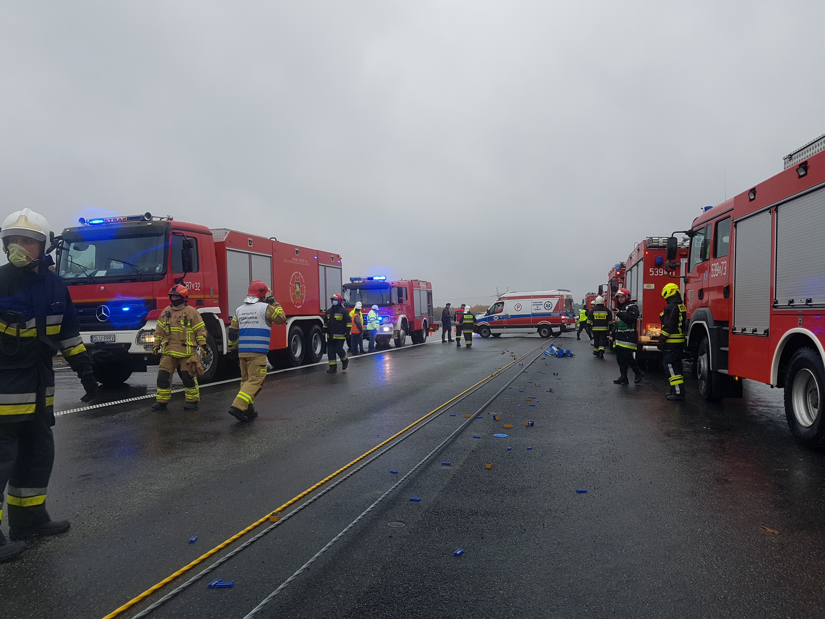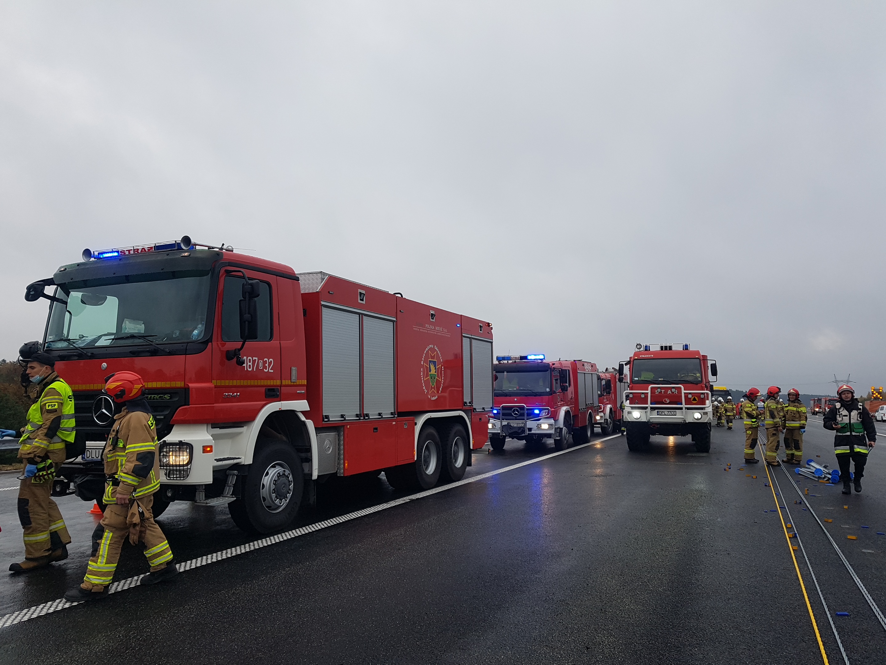 W zdarzeniu wziął też udział mikrobus, który przewoził grupę pracowników pobliskich zakładów KGHM. Oba pasy ruchu w kierunku południowym zostały zablokowane. Liczba poszkodowanych wskazywała na wypadek masowy. Do zdarzenia zostały więc skierowane siły i środki Straży Pożarnej oraz Policji z powiatu polkowickiego i lubińskiego.