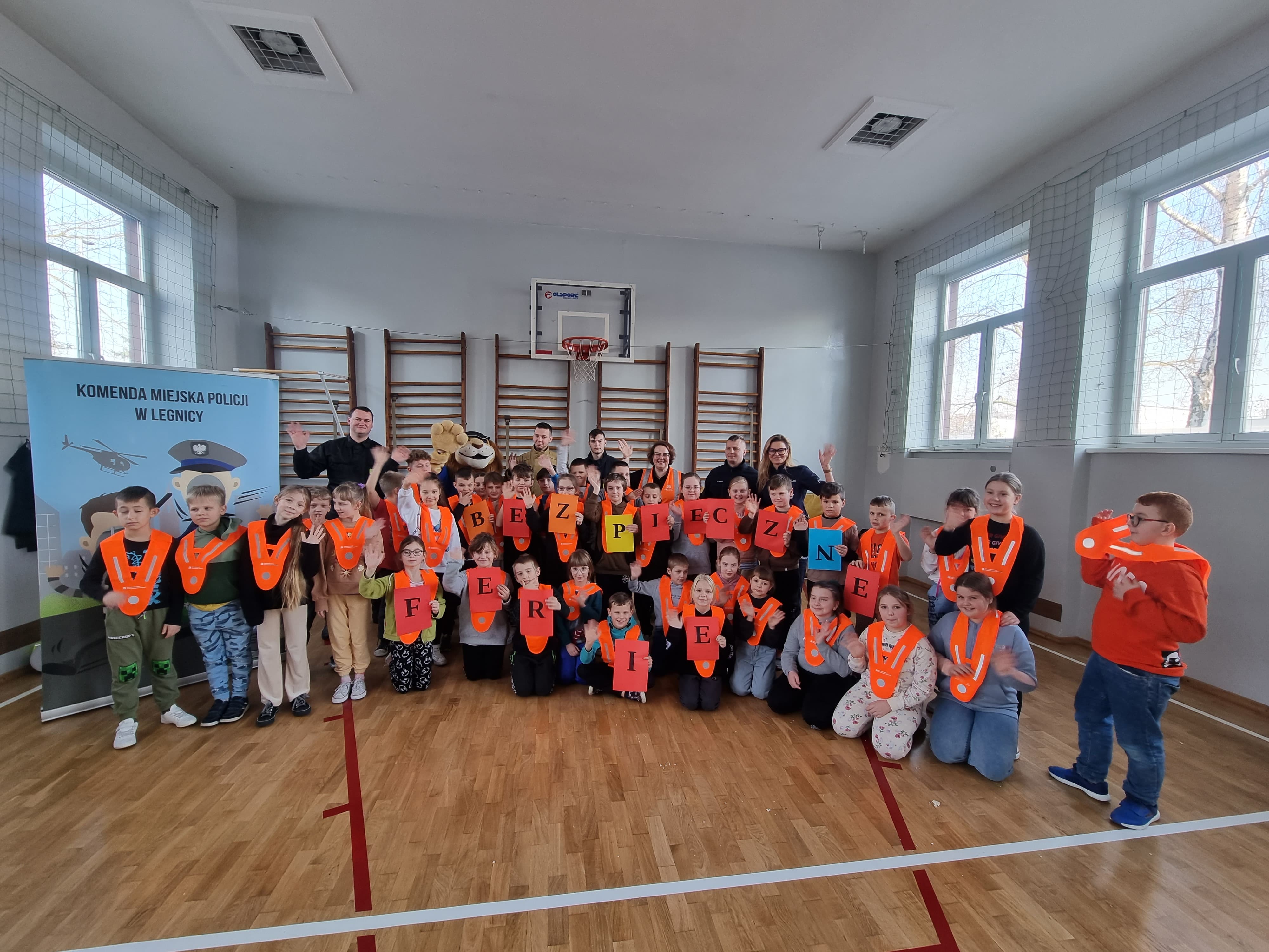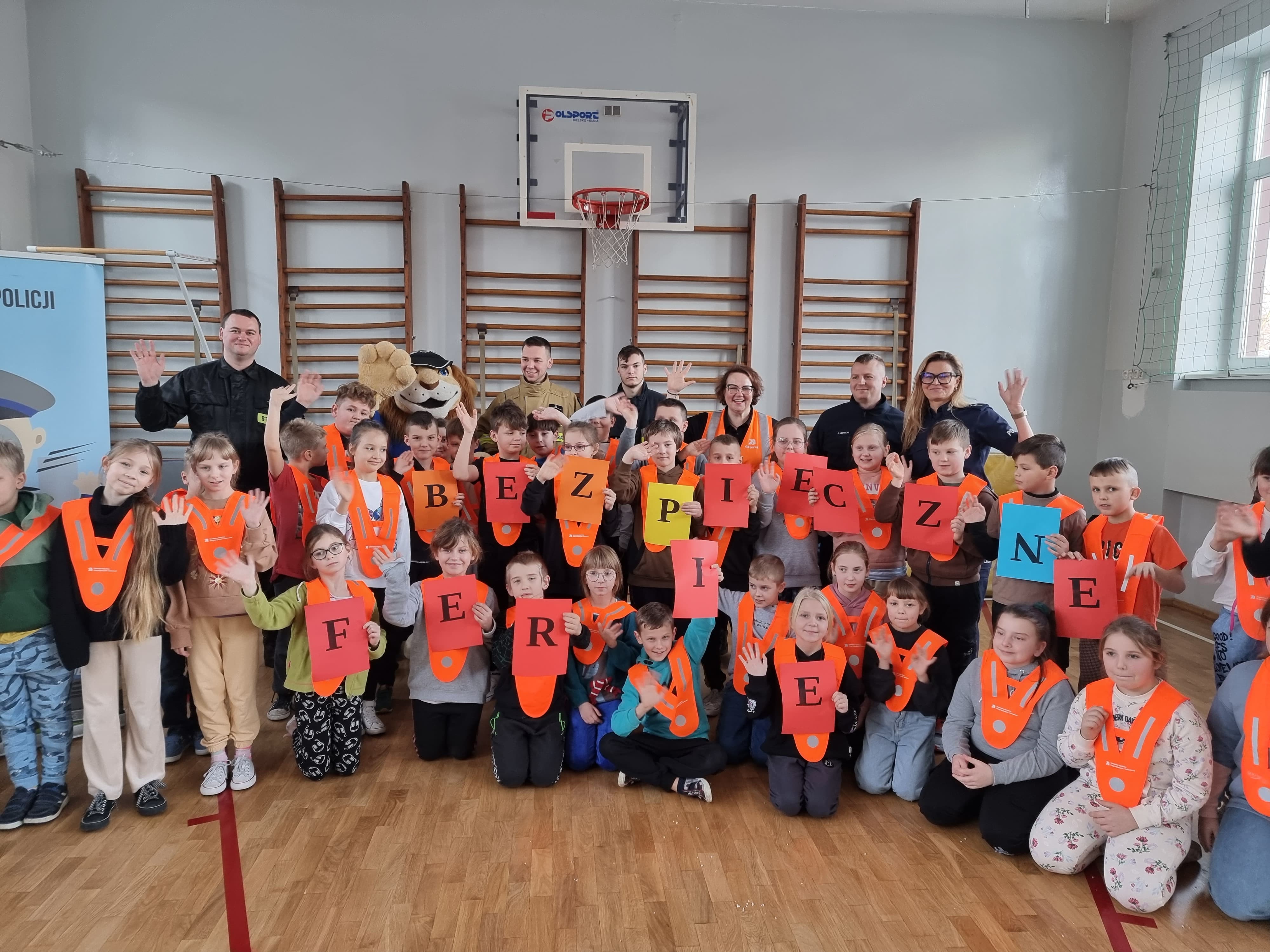 Podczas spotkania z uczniami klas 1-3 policjanci przypomnieli dzieciom m.in. o tym jak należy bezpiecznie spędzać zbliżający się czas wolny. Przestrzegali przed zagrożeniami jakie mogą ich spotkać w czasie zabaw na śniegu i lodzie. Prosili o zachowanie szczególnej ostrożności podczas poruszania się po drogach publicznych. Przypomnieli zasady bezpiecznego przechodzenia przez przejścia dla pieszych oraz przekonywali uczniów o tym, że noszenie odblasków wpływa znacząco na poprawę ich bezpieczeństwa. Dzieci uczyły się także zasad pierwszej pomocy i przypomniały sobie numer alarmowy 112.