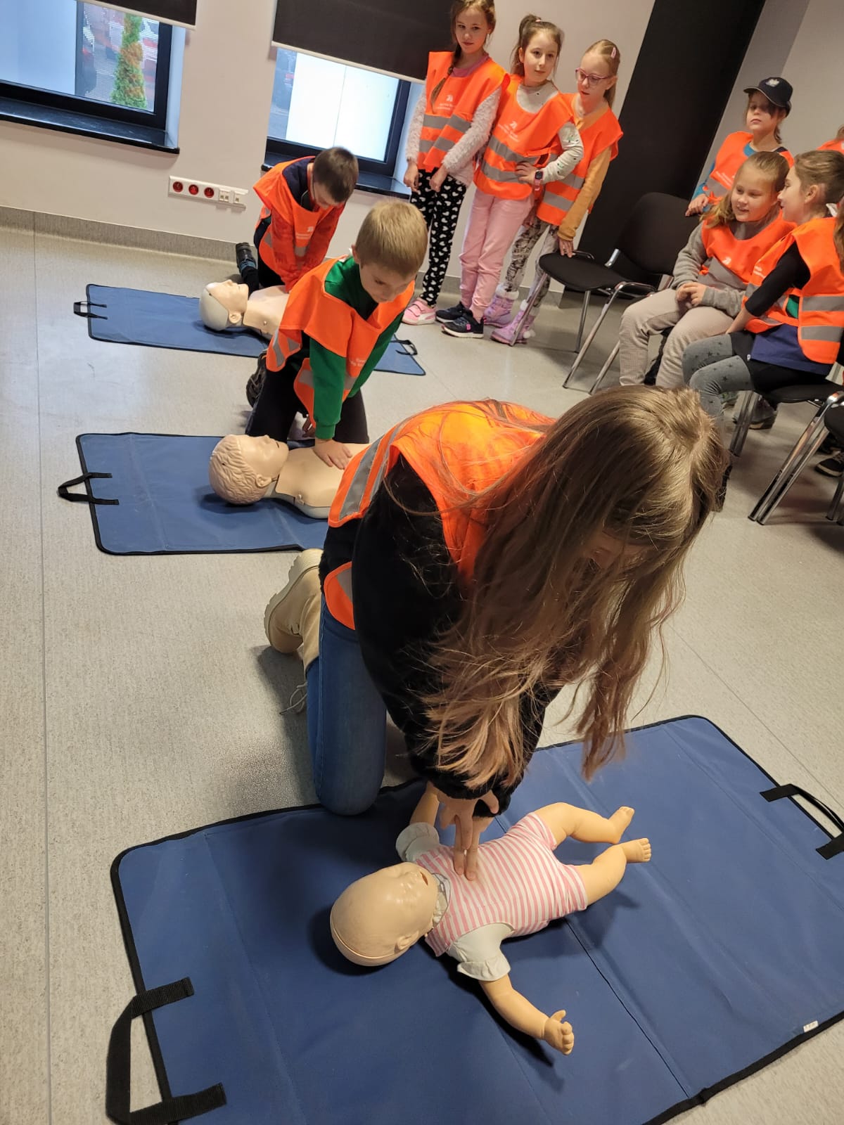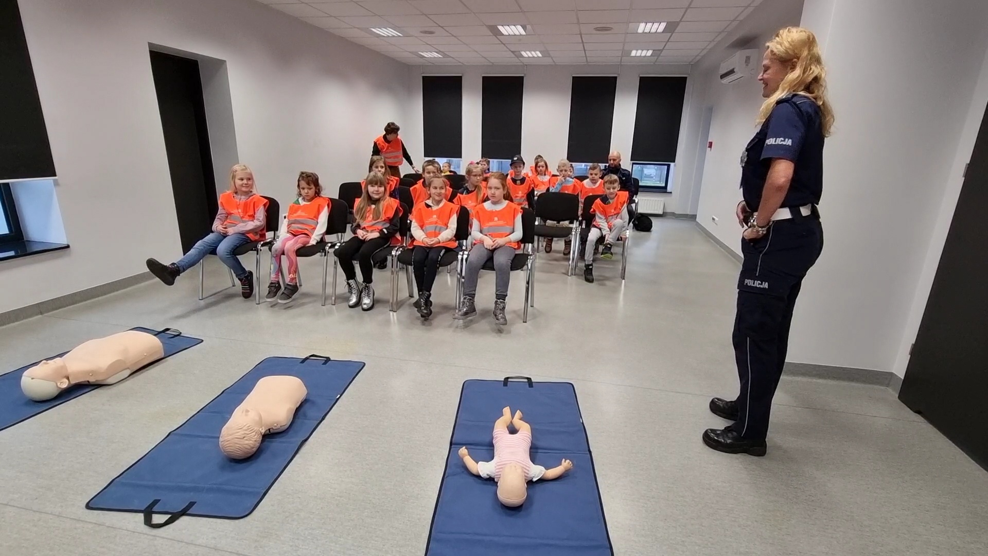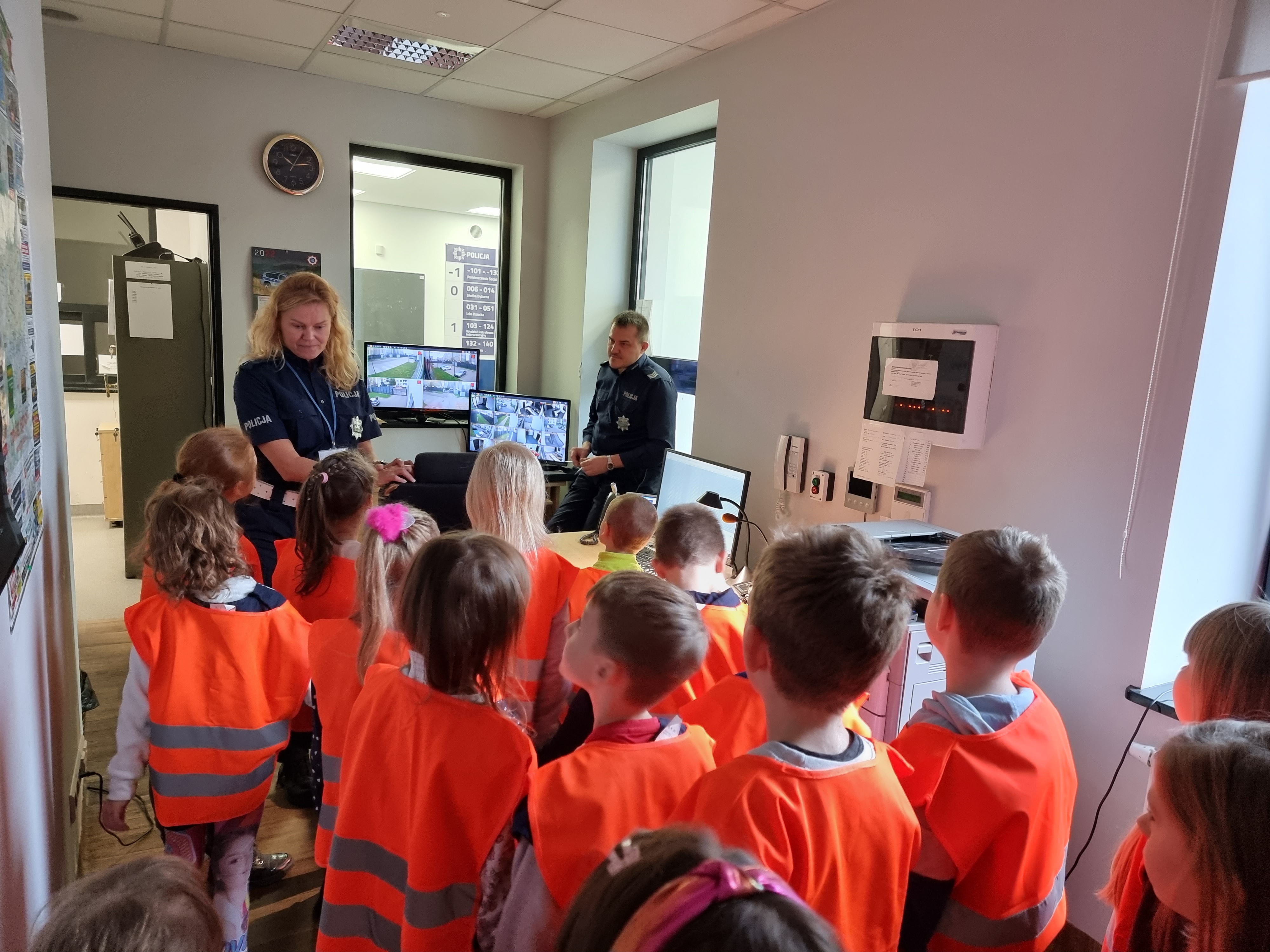 Spotkanie miało na celu zapoznanie dzieci z zasadami bezpieczeństwa, a przede wszystkim prawidłowego poruszania się po drogach, ze szczególnym uwzględnieniem przechodzenia przez jezdnię, aby bezpiecznie dotrzeć do szkoły i do domu. Policjanci i drogowcy opowiadali też o swojej pracy, co bardzo zaciekawiło najmłodszych. Dzieci poznały elementy umundurowania i wyposażenia przybyłych służb, a także zwiedziły komendę, gdzie zobaczyły, jak na co dzień pracują policjanci w poszczególnych wydziałach. Dzieci miały okazję nauczyć się zasad udzielania pierwszej pomocy przedmedycznej opoznały najważniejsze informacje na temat udzielania pomocy osobie poszkodowanej,a także miały okazję poćwiczyć resuscytację na fantomach.