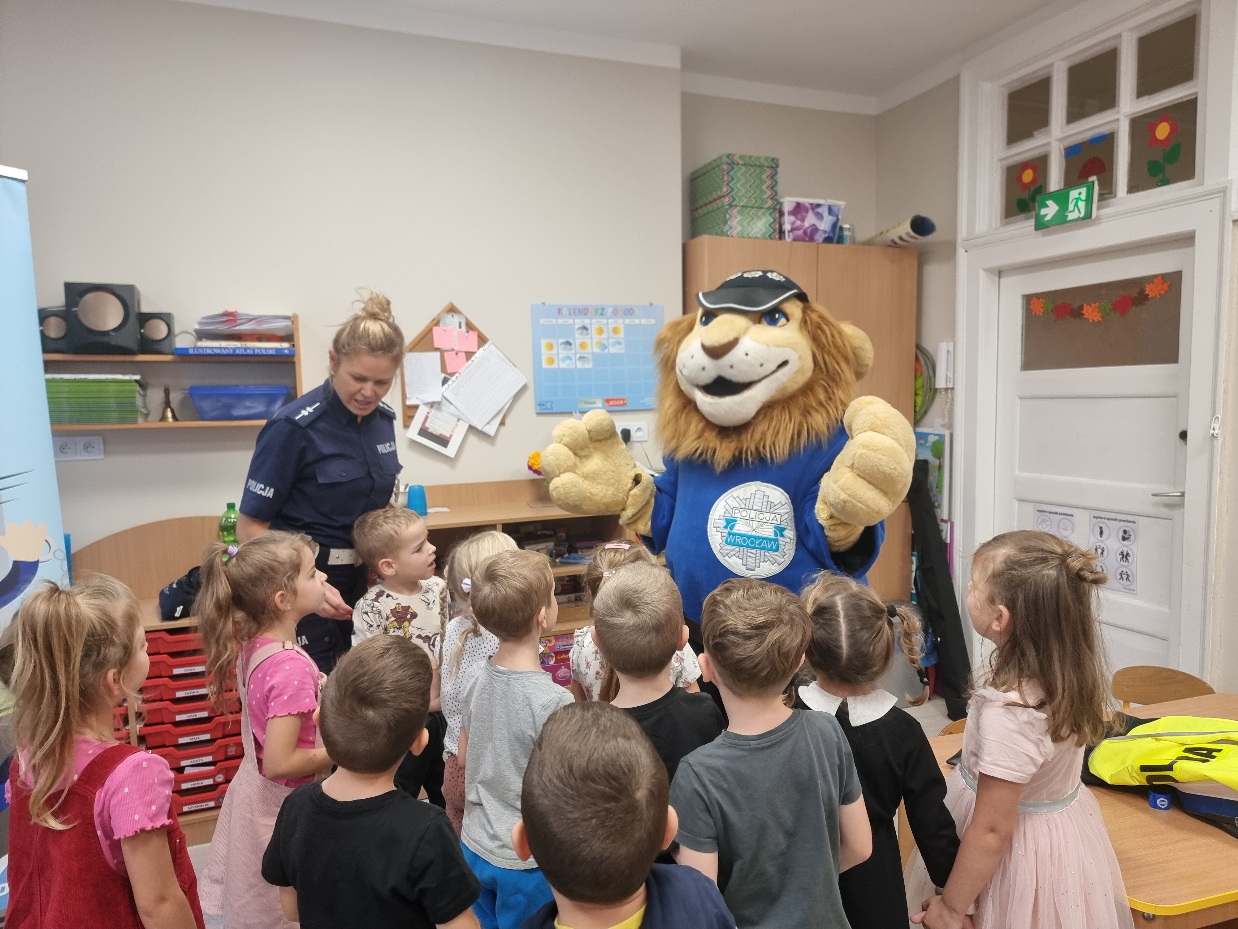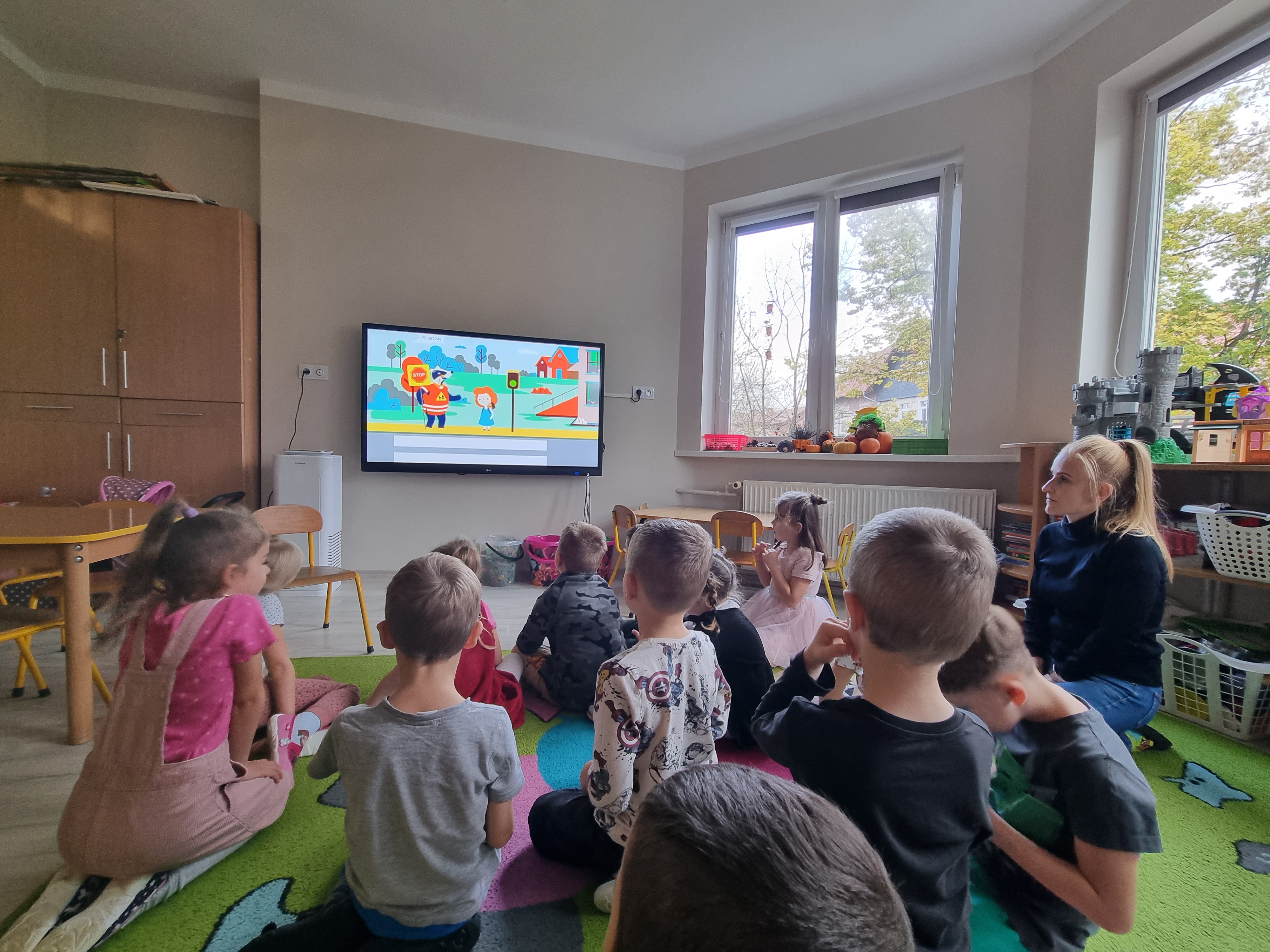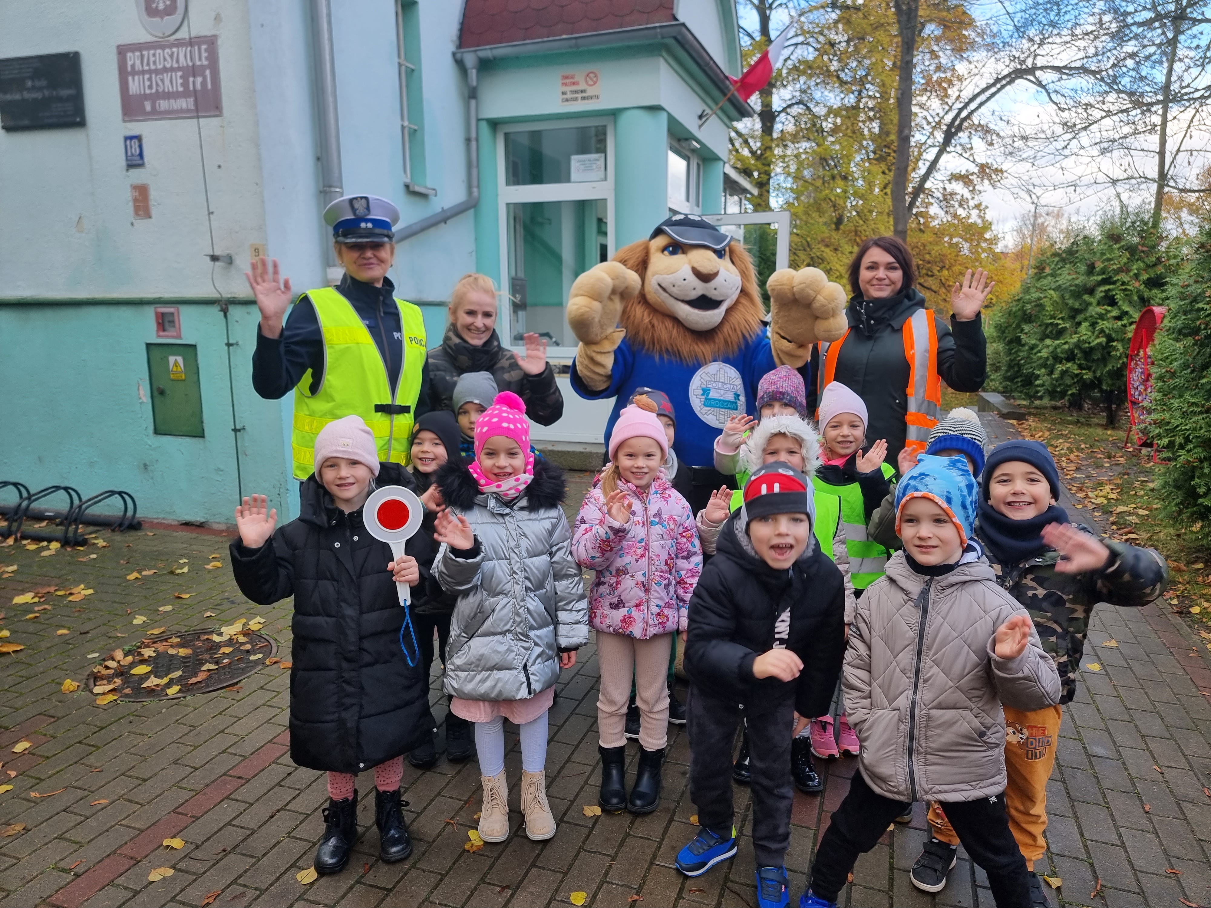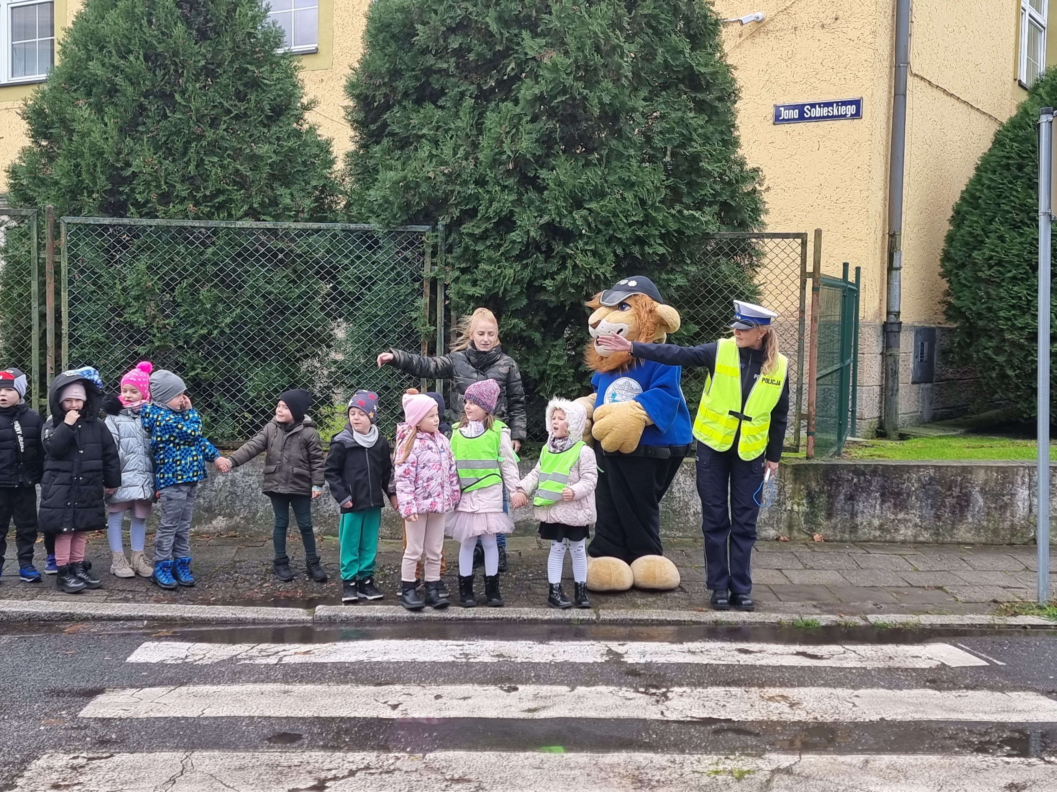 Celem spotkania było zapoznanie przedszkolaków z zasadami prawidłowego przechodzenia przez ulicę. O tych bardzo ważnych tematach opowiadał Jeż Drogowiec na animowanych filmach, policjantka oraz gość specjalny Komisarz Lew. Policjantka przypomniała najmłodszym, jak niebezpieczne jest przebieganie przez jednię oraz jak należy zachować się przed przejściem dla pieszych. To zasady, o których powinien jednak pamiętać każdy. Maluchy przypomniały sobie numer alarmowy, pod który należy dzwonić w razie niebezpieczeństwa. Dzieci bardzo aktywnie uczestniczyły w zajęciach chętnie przytaczając własne przykłady dotyczące bezpieczeństwa w życiu codziennym.