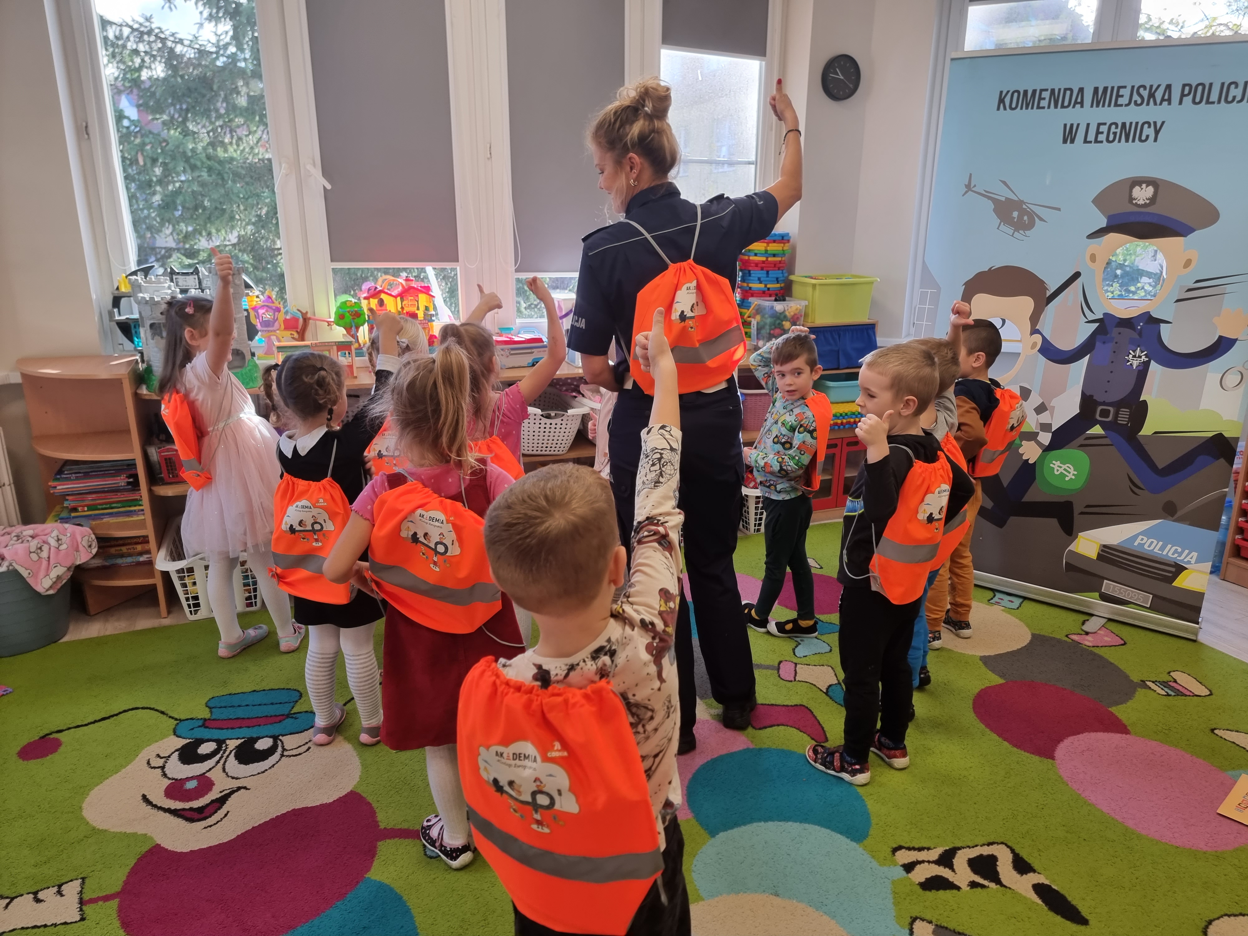 Przedszkolaki z Chojnowa wzięły udział w pogadance o bezpieczeństwie z policjantką z Komendy Miejskiej Policji z Legnicy oraz Generalną Dyrekcją Dróg Krajowych i Autostrad.