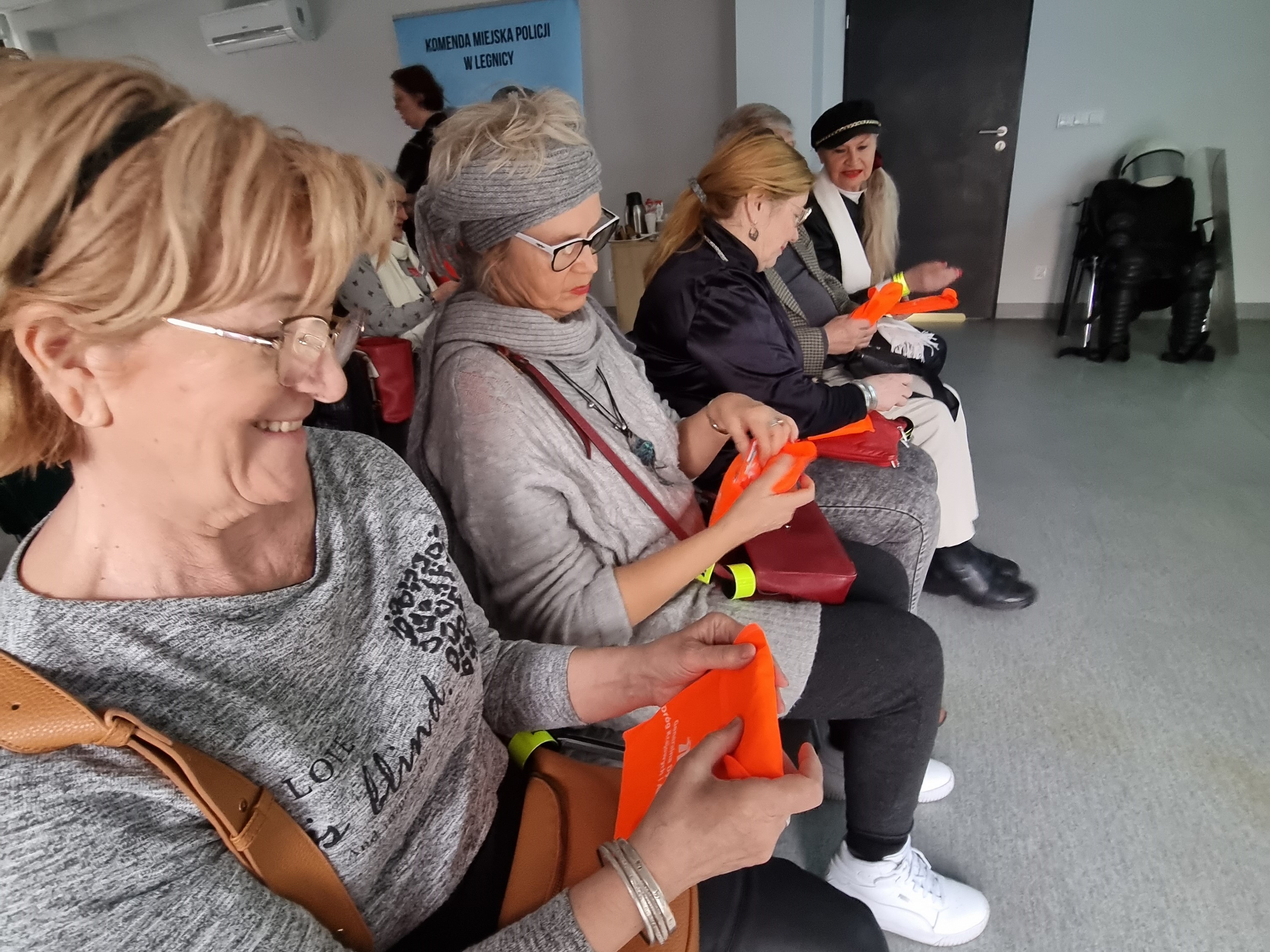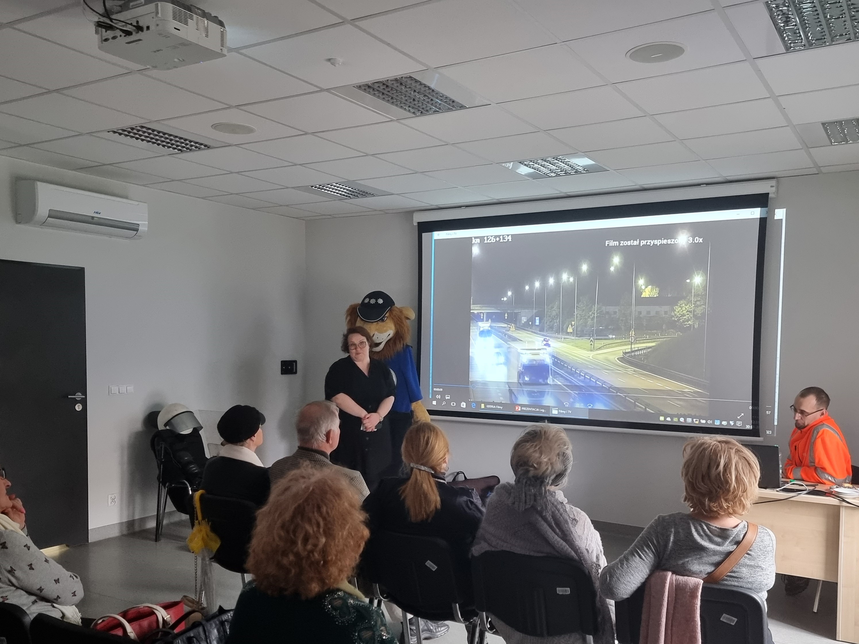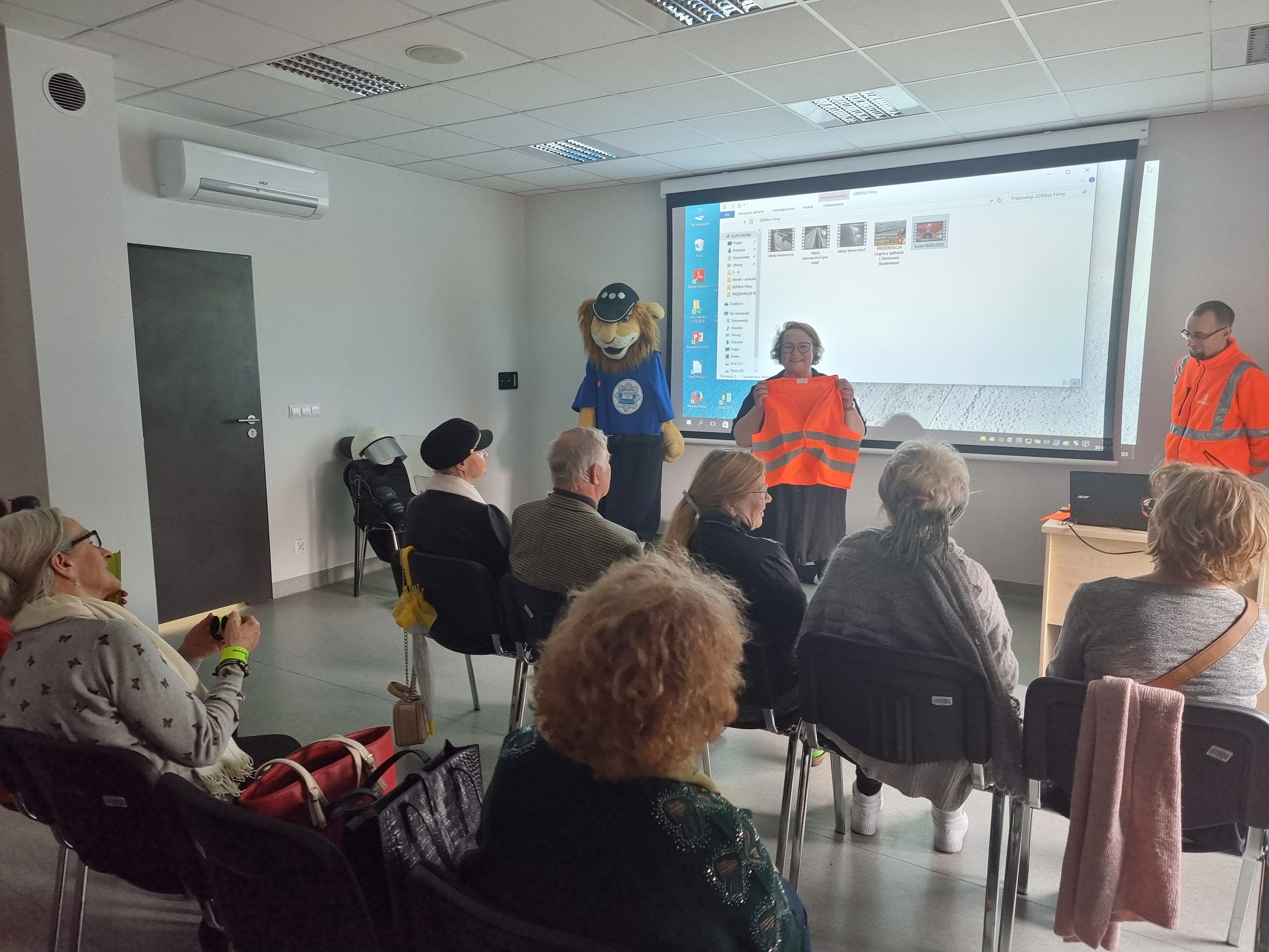 Seniorzy mieli okazję dowiedzieć się o planach związanych z rozwojem sieci drogowej na Dolnym Śląsku oraz o tym, jak ważne znaczenie ma odblask na ubraniach podczas wieczornych spacerów.