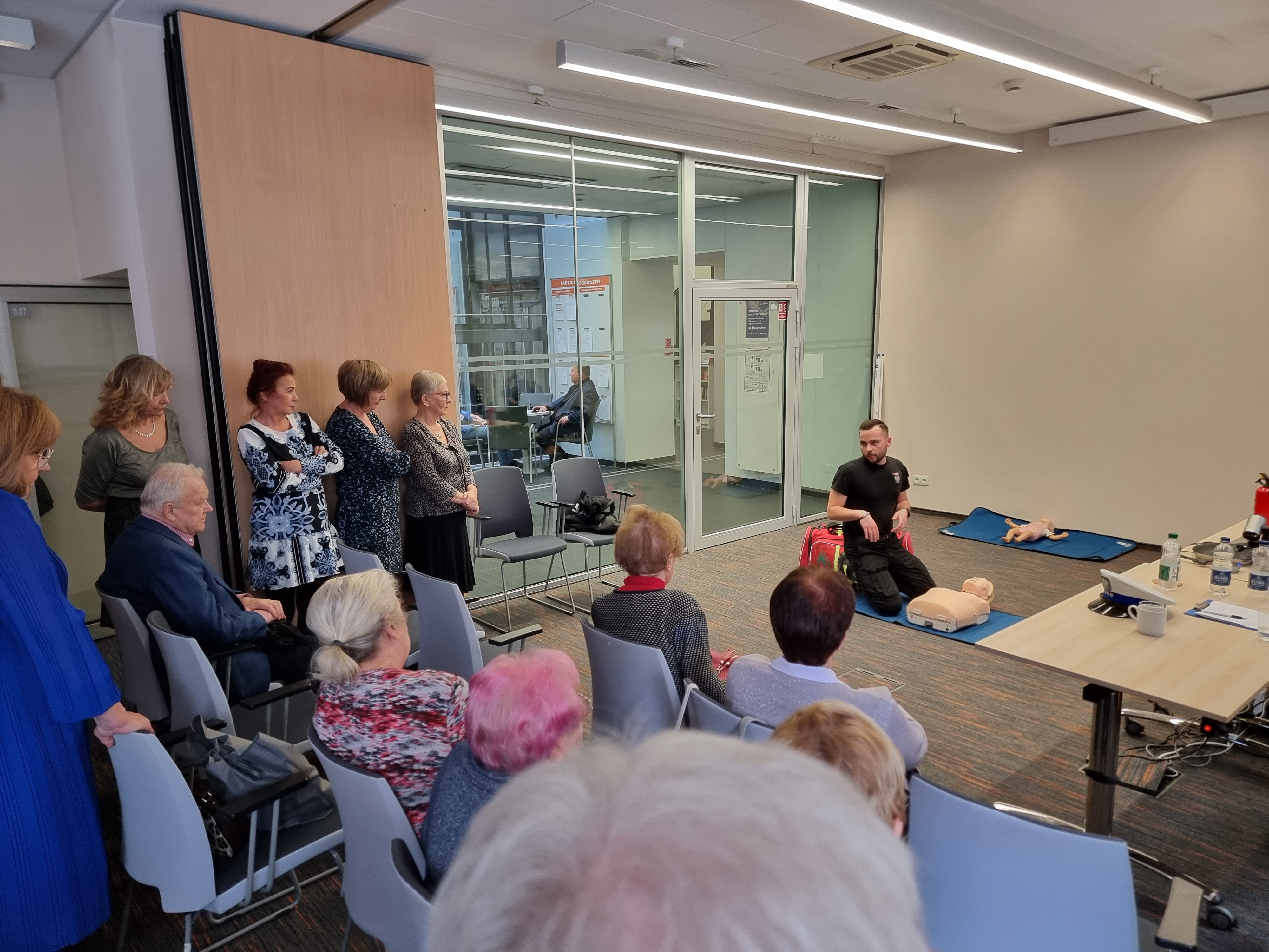 Wielkim zainteresowaniem cieszył się pokaz udzielania pierwszej pomocy przedmedycznej wykonany przez Ochotników Straży Pożarnej z Miłkowic k. Legnicy. Ochotnicy opowiedzieli na co zwracać uwagę podczas udzielania pomocy poszkodowanemu, przypomnieli o najistotniejszych elementach wykonując połączenie na numer alarmowy 112 oraz o roli urządzenia AED.