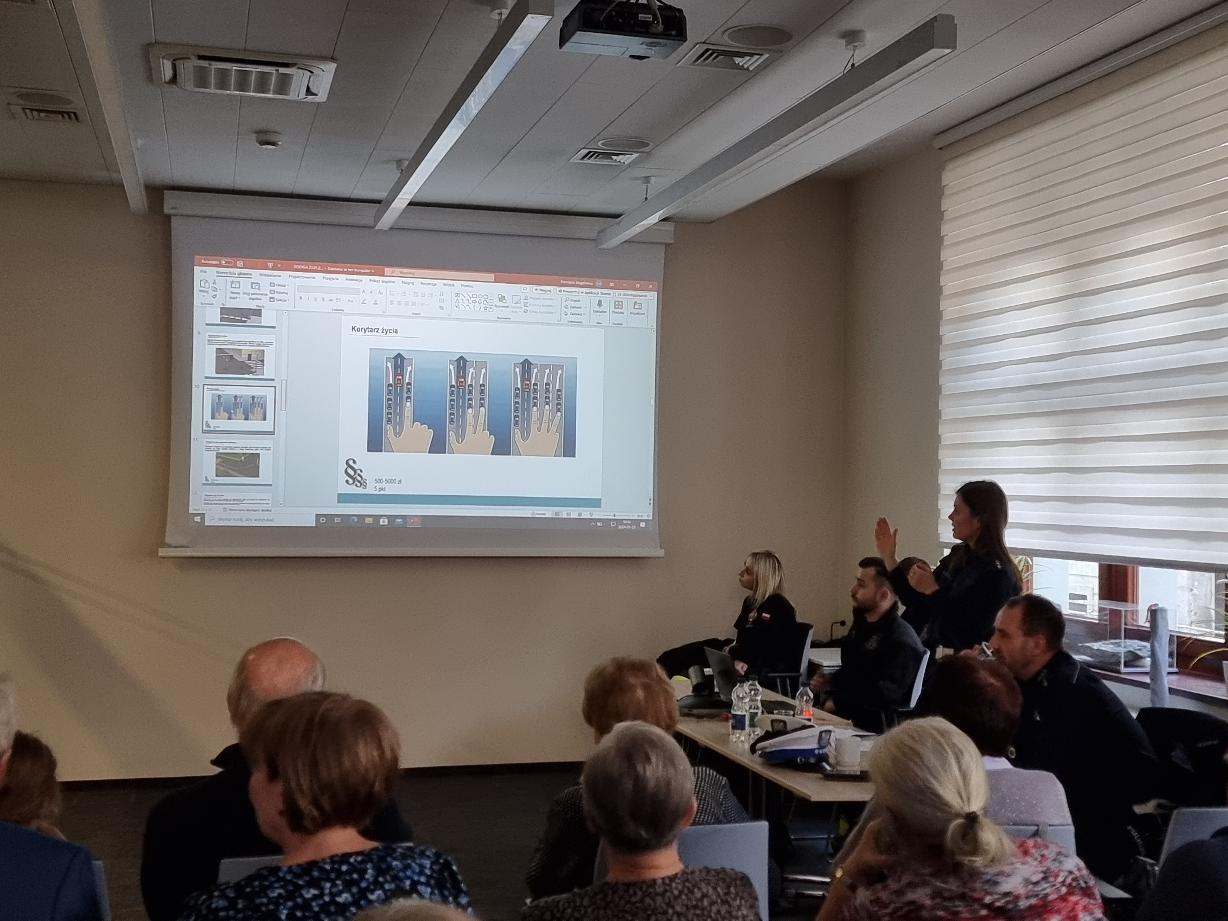 Na koniec opowiedzieliśmy naszym Gościom jakie działania poprawiające bezpieczeństwo wykonujemy na sieci naszych dróg. Uczestnicy spotkania otrzymali od elementy odblaskowe oraz