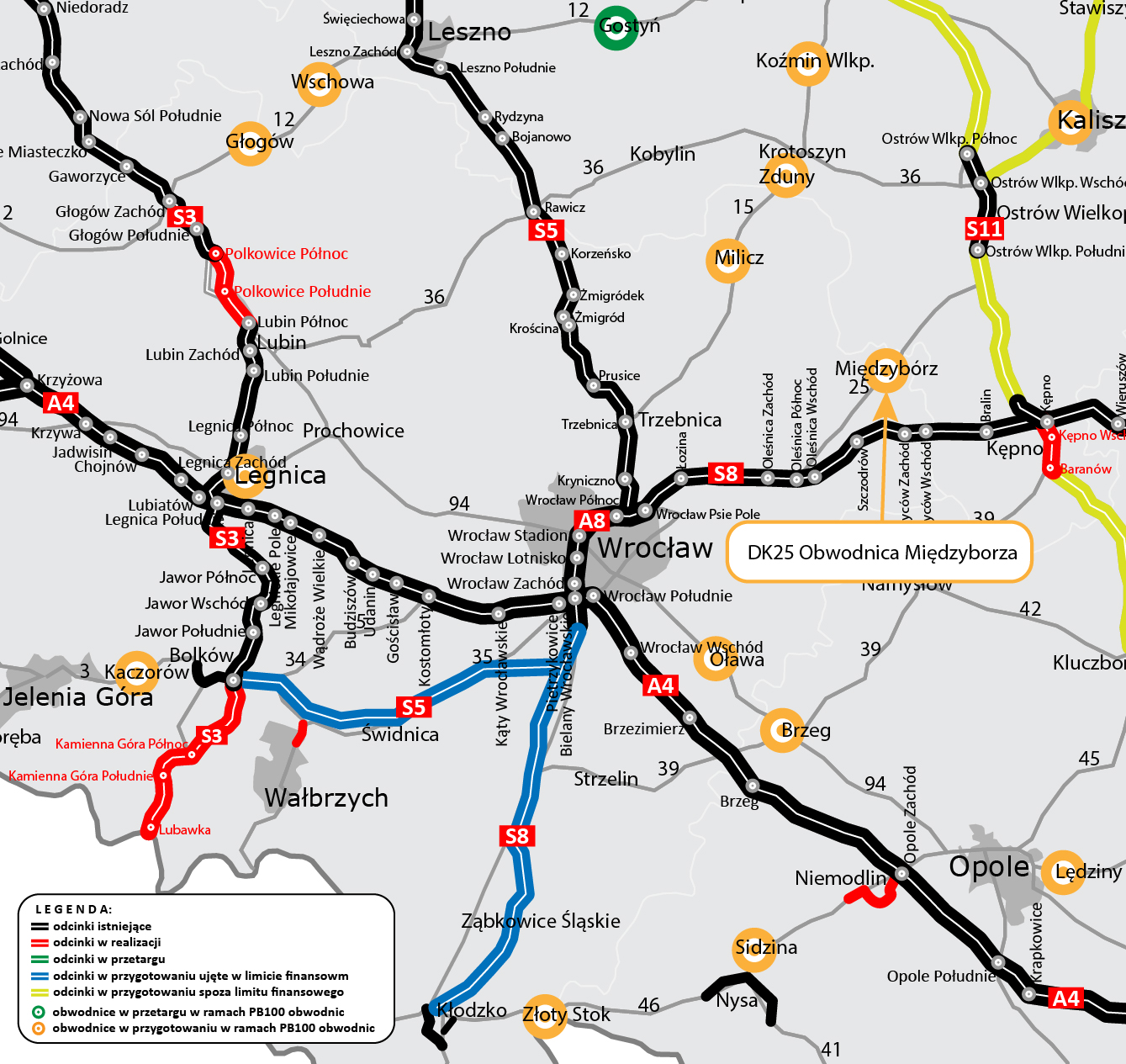 W czerwcu podpisaliśmy umowę na prace przygotowawcze dla budowy obwodnicy Międzyborza w ciągu drogi krajowej nr 25 (DK25). To jedna z siedmiu obwodnic dolnośląskich miast realizowana w ramach rządowego Programu budowy 100 obwodnic. Umowa na prace przygotowawcze, zawarta z firmą Multiconsult Polska, o wartości prawie 3 mln zakłada wykonanie Studium techniczno-ekonomiczno-środowiskowego z koncepcją programową oraz materiałami do wniosku o decyzję o środowiskowych uwarunkowaniach.
