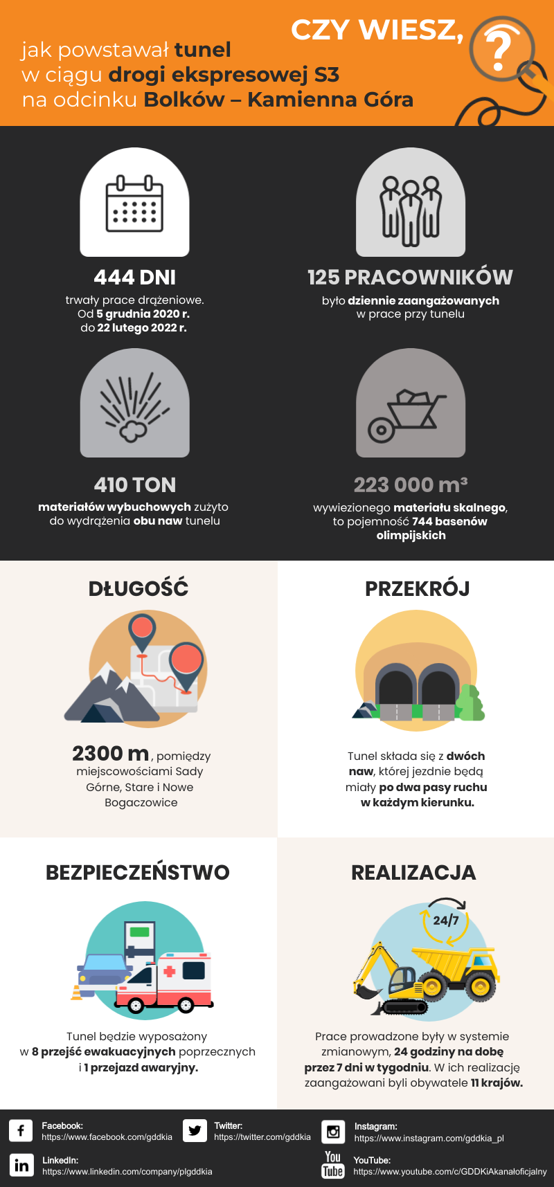 Najbardziej spektakularnym elementem na budowie drogi ekspresowej S3 pomiędzy Bolkowem a Kamienną Górą jest wykonanie dwóch tuneli drogowych. Pierwszy (TS-26) o długości około 2300 metrów i drugi (TS-32) o długości około 320 metrów. Drążenie obu naw dłuższego z nich właśnie dobiegło końca.