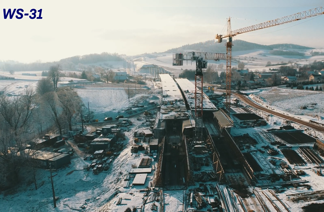 Mimo trwającego od 15 grudnia do 15 marca okresu zimowego wykonawca w miarę korzystnych warunków atmosferycznych i możliwości technologicznych realizuje wykopy w gruntach nieskalistych i skalistych oraz rowy. W zakresie branży mostowej prowadzone są m.in. nasuwania wiaduktów w ciągu drogi ekspresowej. Jeden będzie miał długość 532 m, a drugi 349 m. Na innych obiektach prowadzone są prace związane z deskowaniem, zbrojeniem i wykonywaniem ustroju nośnego.