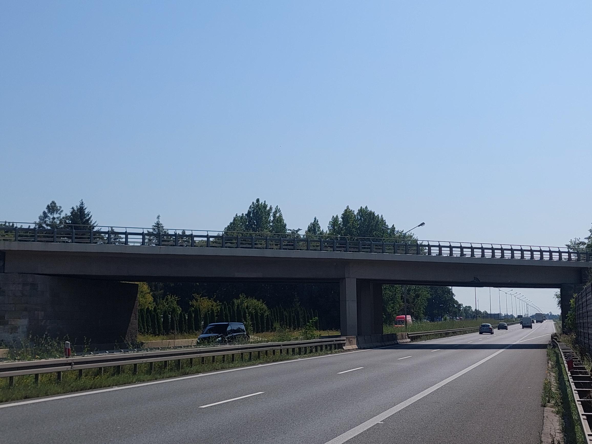 Uszkodzony wiadukt nad A4 koło Krajkowa w ciągu drogi wojewódzkiej nr 395 pomiędzy Strzelinem a Wrocławiem