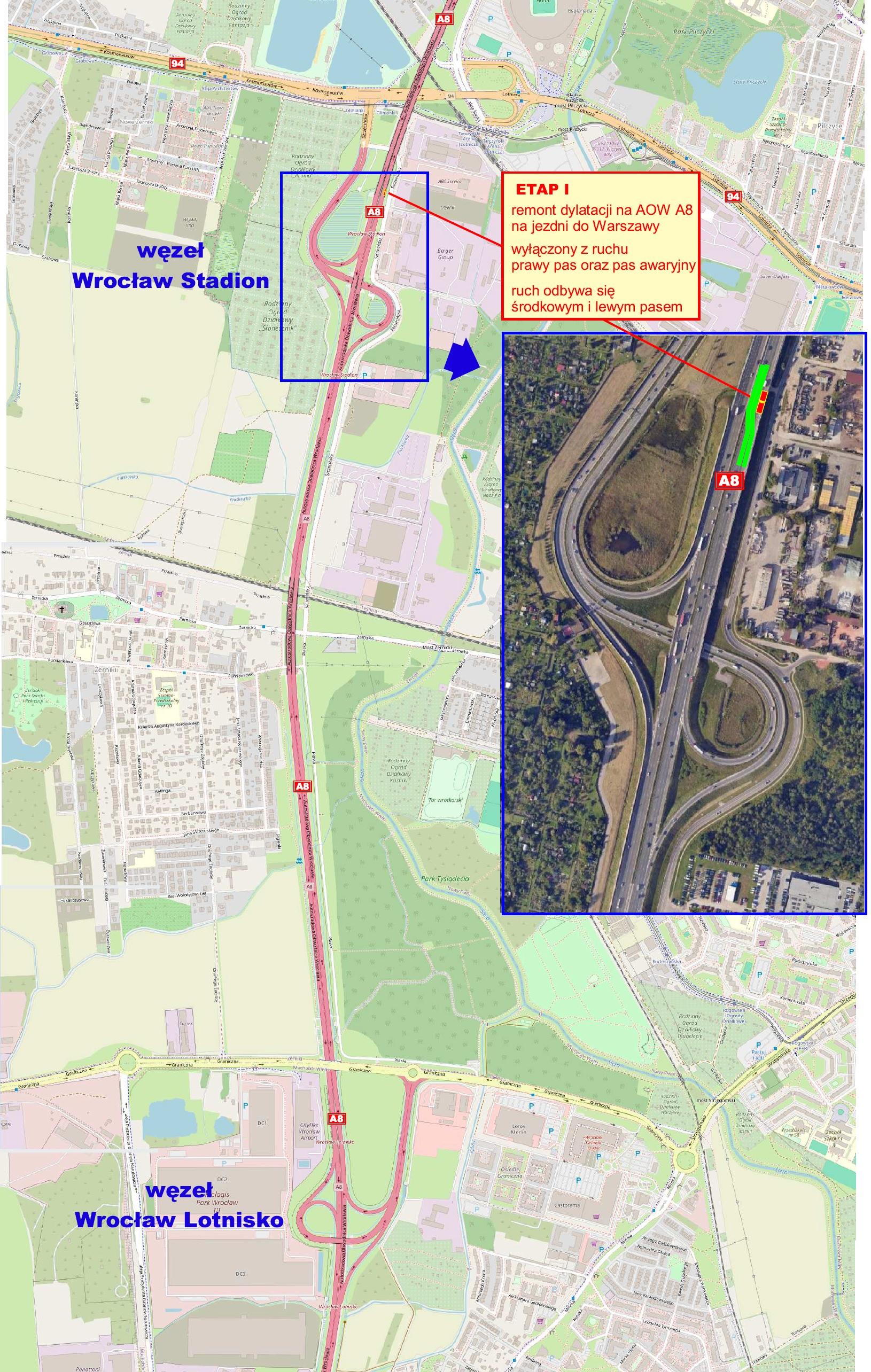 II etap rozpocznie się w trzecim tygodniu lipca br. i zgodnie z umową może potrwać do 8 dni. Wyłączone z ruchu będą pasy szybki i środkowy. Podobnie jak w pierwszym etapie, najpierw nastąpi demontaż pozostałej części uszkodzonej dylatacji, a następnie montaż nowej. Etap ten, w celu zapewnienia maksymalnego bezpieczeństwo uczestników ruchu, będzie dodatkowo wymagał wyłączenia z użytkowania łącznicy wjazdowej na AOW z węzła Wrocław Stadion w kierunku Warszawy. Sugerowany wjazd na AOW będzie możliwy poprzez węzeł Lotnisko lub inne węzły.