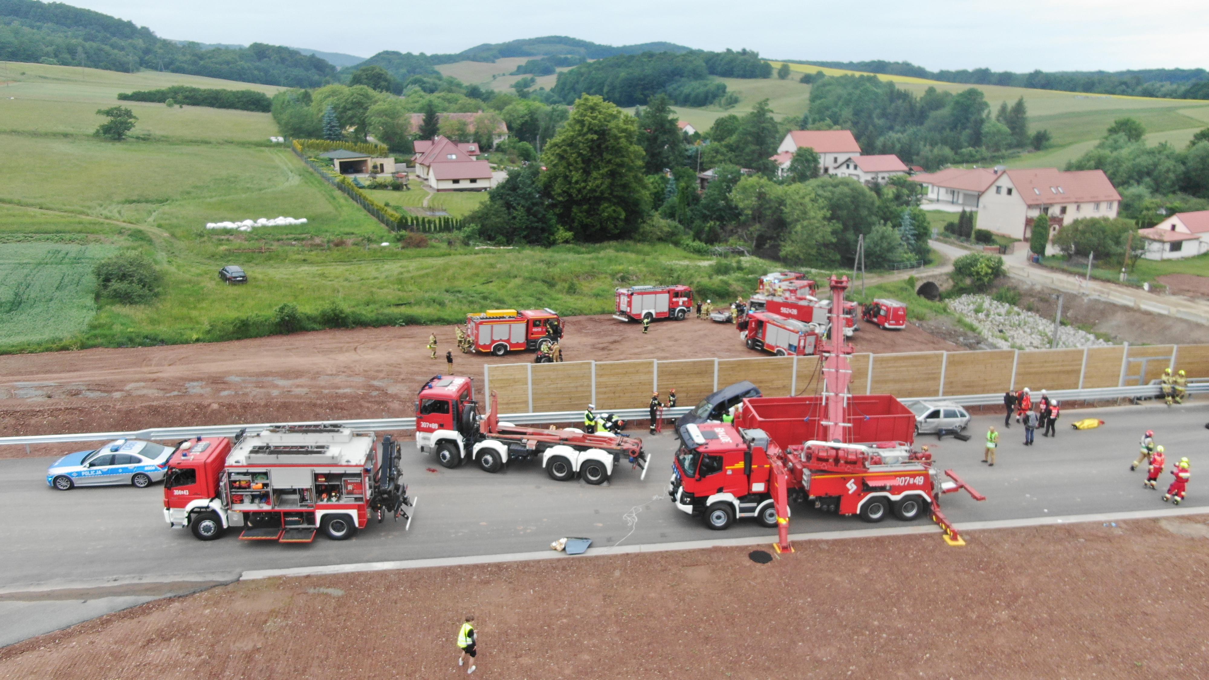 W tunelu na odcinku drogi S3 Bolków – Kamienna Góra doszło do karambolu, w wyniku którego kilkanaście osób odniosło obrażenia, a na jezdnię wylała się substancja niebezpieczna – to tylko fragment scenariusza ćwiczeń służb ratowniczych. Przeprowadzono je na nieczynnym jeszcze odcinku ekspresówki, w okolicy Starych Bogaczowic.