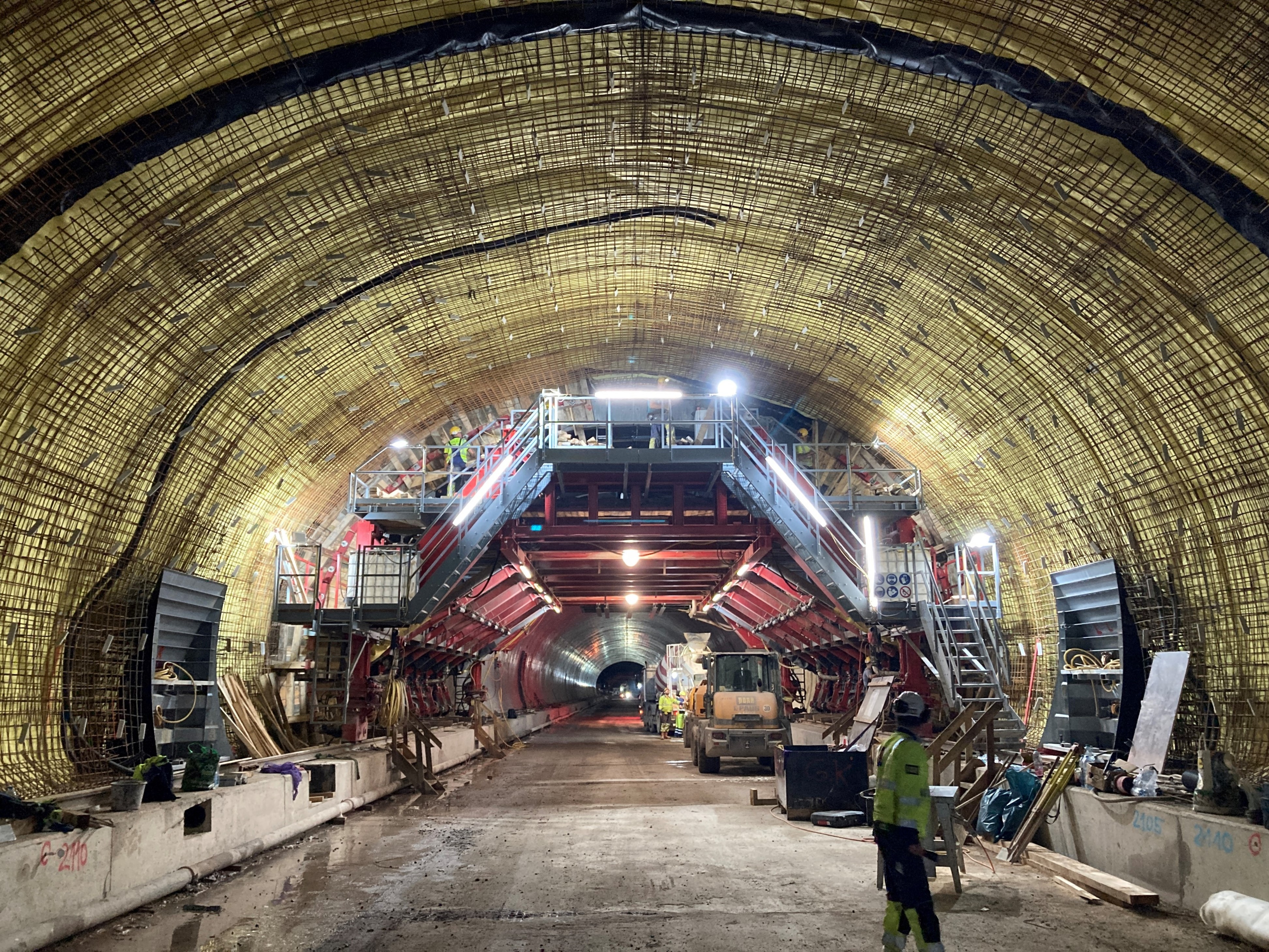 Pierwsze sklepienie segmentu w obudowie ostatecznej zostało zabetonowane 29 maja 2022 roku, a 356 dni później ukończyliśmy ostatni z 369 segmentów sklepienia. Około 110 wykwalifikowanych pracowników, codziennie podczas zmian dziennych i nocnych, pracowało nad ukończeniem tunelu.