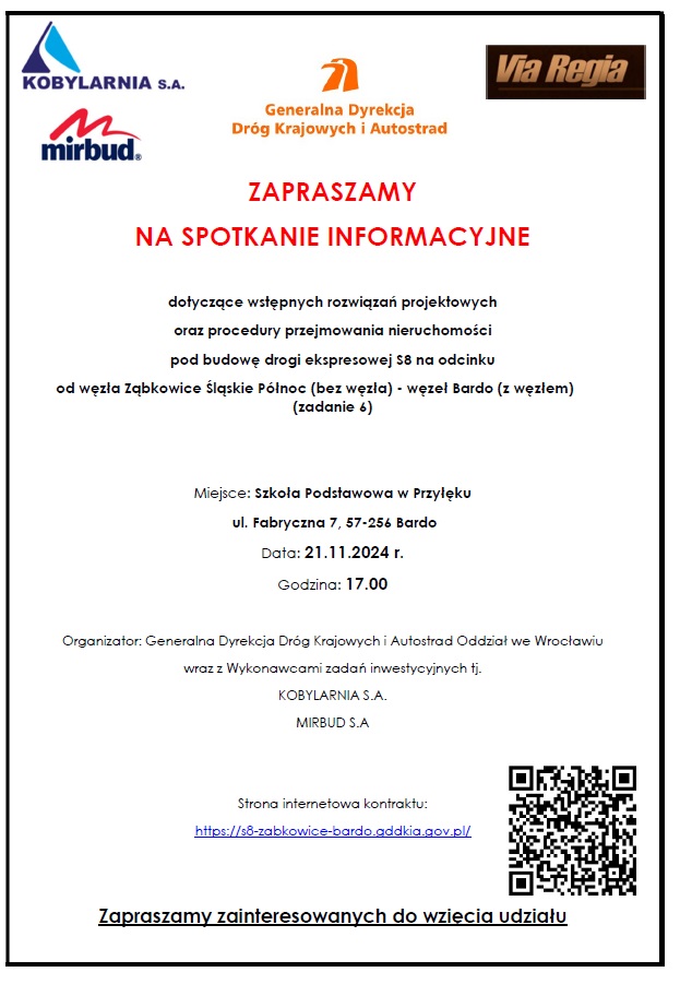 Strona internetowa zadania: https://s8-zabkowice-bardo.gddkia.gov.pl/