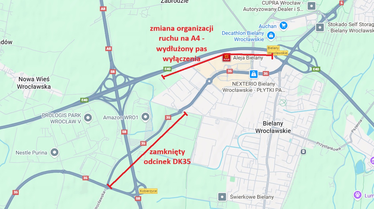 Zmiana organizacji ruchu w obrębie węzła Bielany Wrocławskie