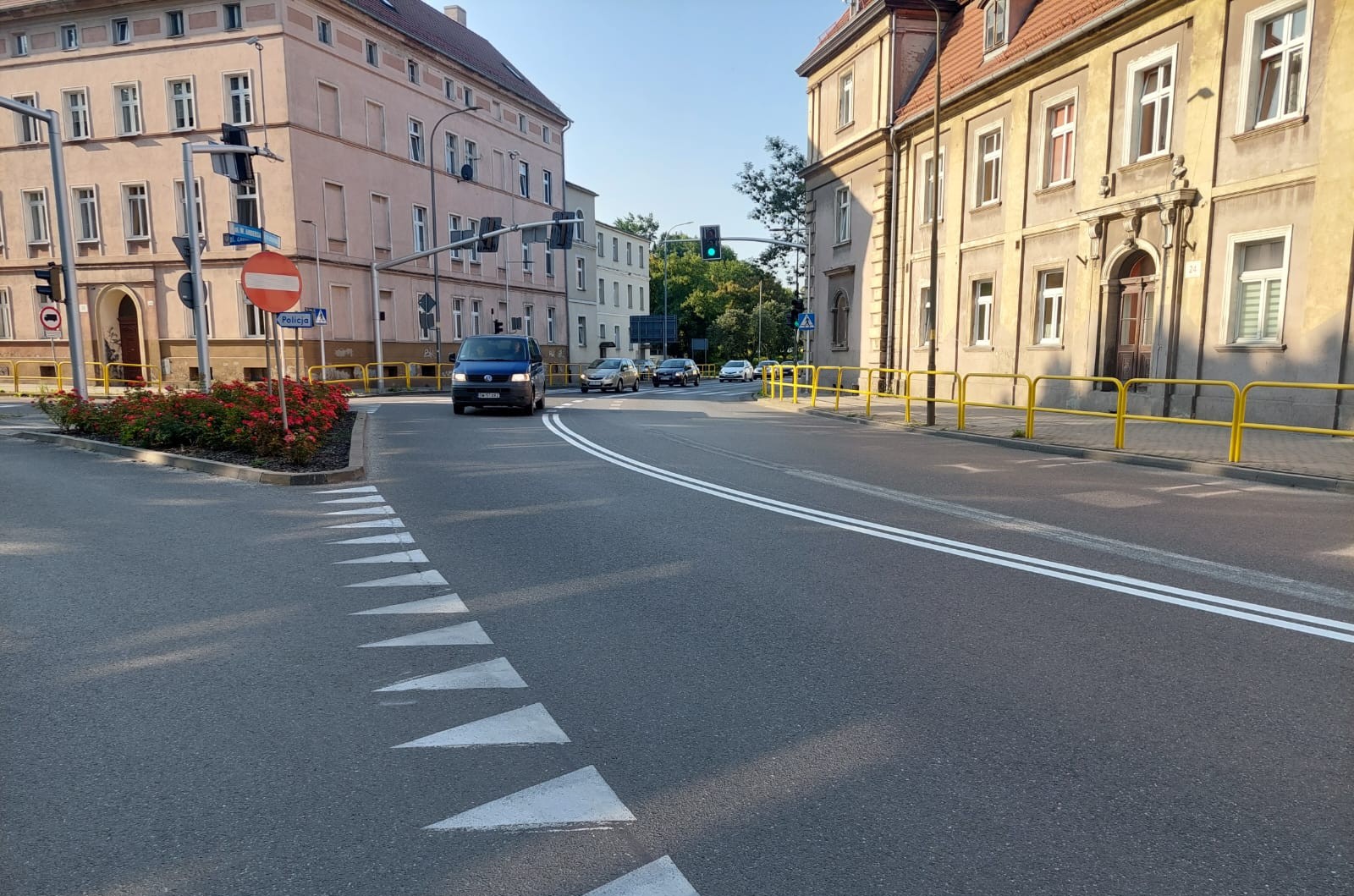 Wprowadziliśmy korektę oznakowania poziomego jezdni w zakresie linii segregacyjnych. To rozwiązanie ma się przyczynić do upłynnienia ruchu na tarczy skrzyżowania – będzie możliwe ominięcie pojazdów chcących skręcić w lewo z drogi krajowej nr 94 w ul. Strzelną lub na pl. Zamkowy. Zależy nam, aby pojazdy skręcające w lewo nie blokowały głównego ciągu komunikacyjnego, czyli jezdni drogi krajowej nr 94.