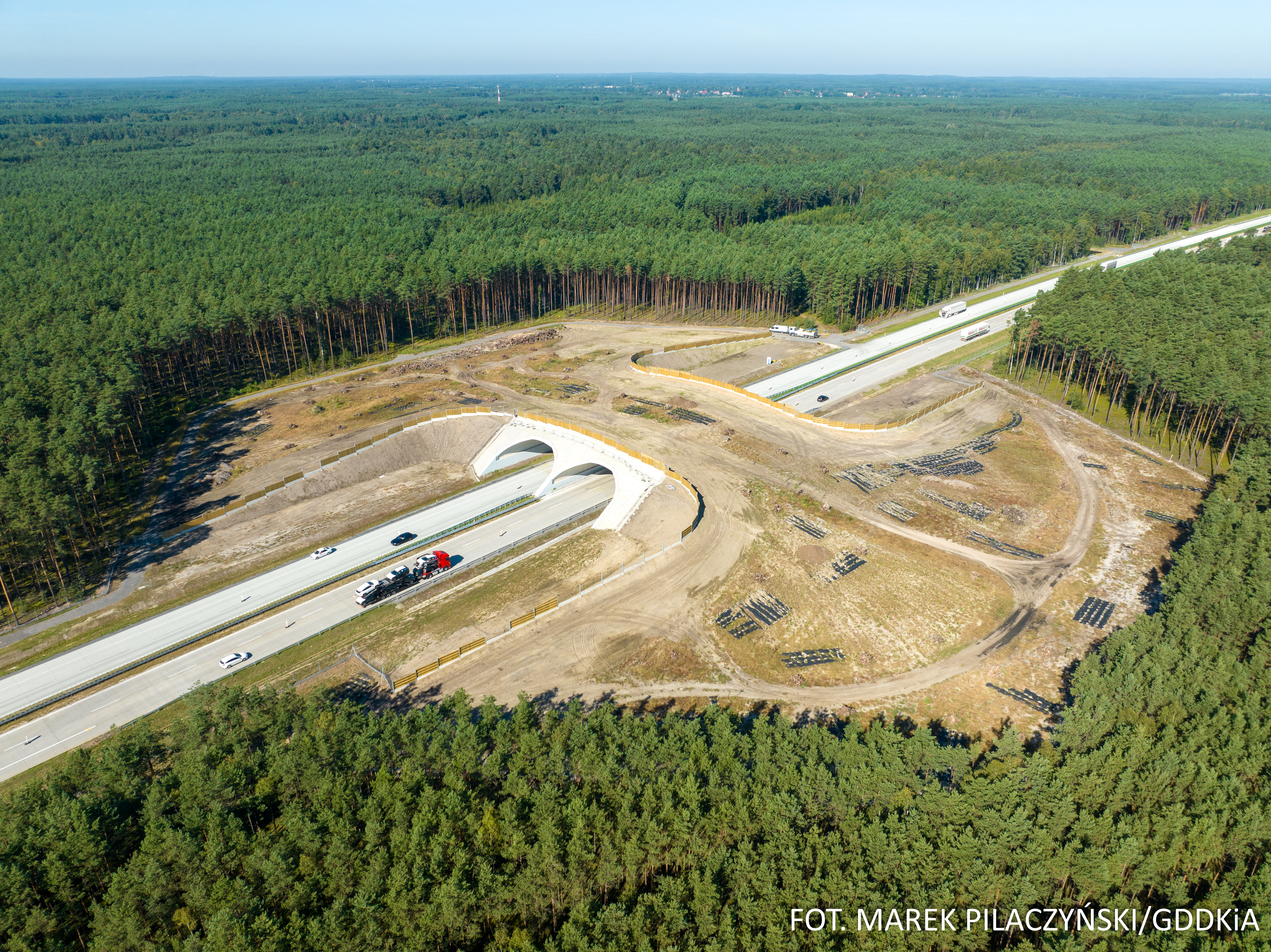 - dwa górne przejścia dla dużych zwierząt o szerokości ponad 60 m, oddalone od siebie o ponad 3 km, o ustroju łukowym z blachy falistej;