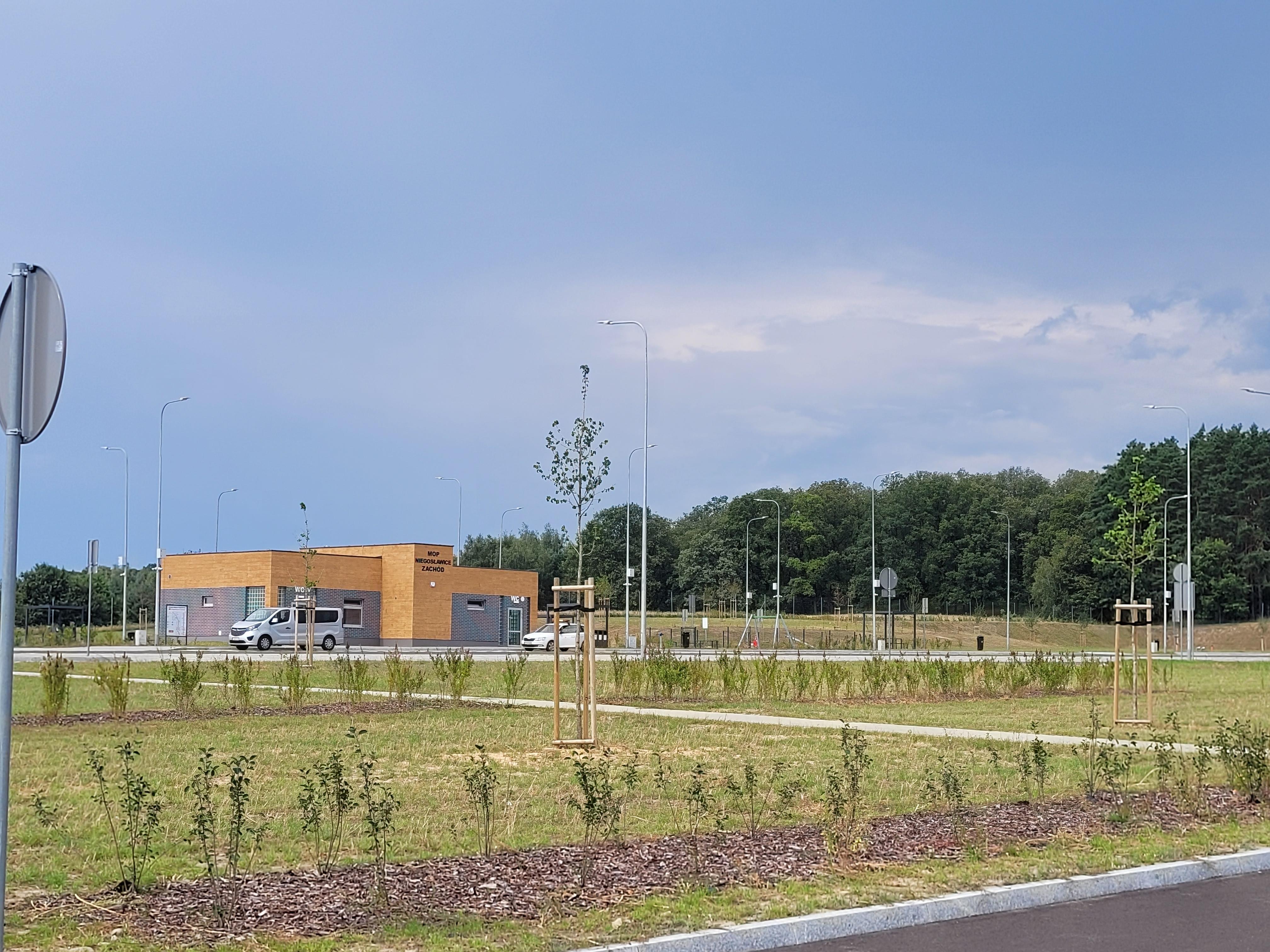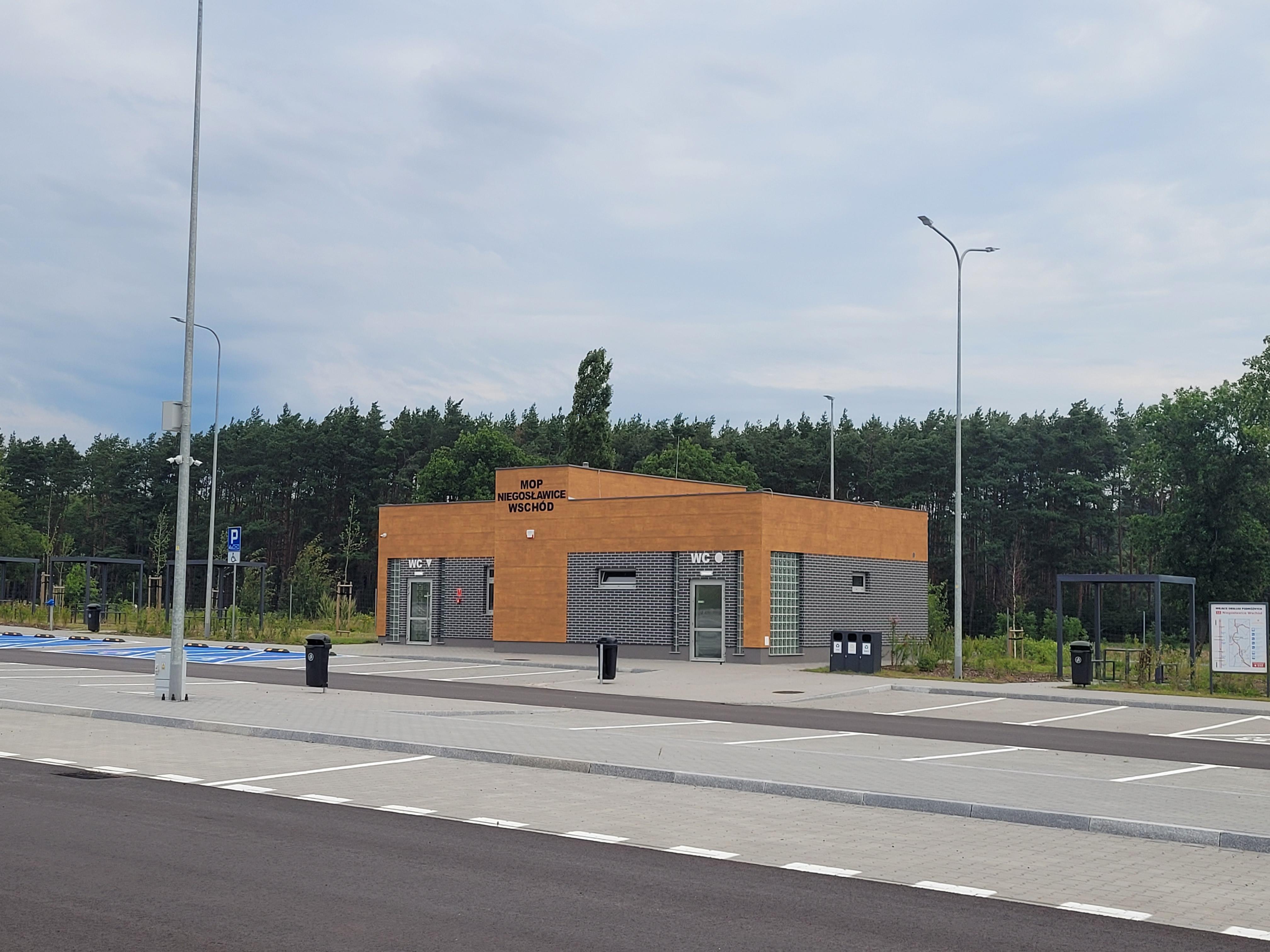 MOP-y Niegosławice to dwa nowe obiekty, które zostały wyposażone w infrastrukturę podstawową, tj. parkingi, toalety, miejsca do odpoczynku, plac zabaw dla dzieci oraz siłownię zewnętrzną. W planach jest ich rozbudowa (już przez podmiot zewnętrzny w ramach umowy na dzierżawę) o stacje paliw i restauracje.