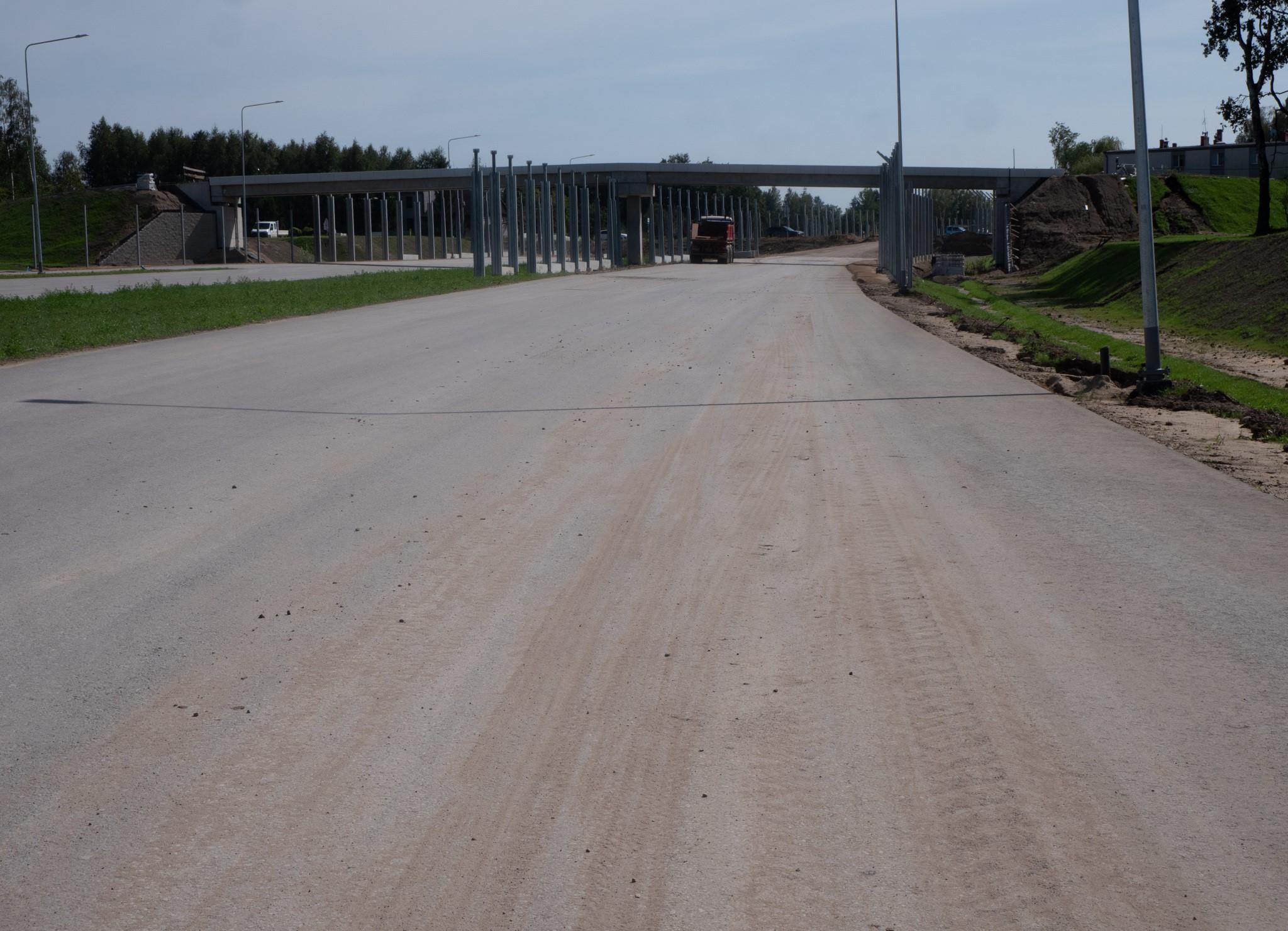 W zakresie pozostałych obiektów realizowane są zasypki, wykonywane płyty przejściowe w celu połączenia obiektów z nasypem drogowym. Rozpoczęte zostały roboty wykończeniowe na obiektach w postaci wykonywania kap chodnikowych. W kolejnym etapie realizowane będą roboty brukarskie, bariery drogowe, ekrany na obiekcie oraz nawierzchnie.