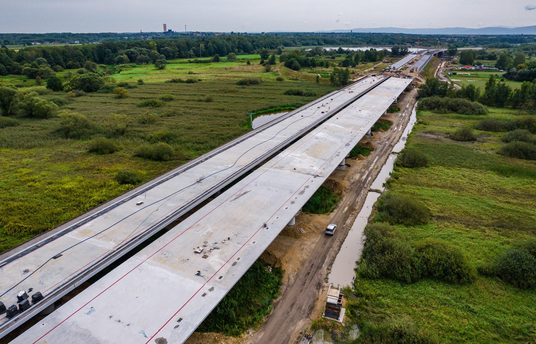 W lipcu udostępnione do ruchu zostały wiadukty nr 18 na węźle Oświęcim oraz nr 27 na węźle Wola. Obecnie trwają intensywne roboty ziemne w rejonie zakola Wisły niedaleko węzła Brzeszcze. Jeżeli warunki atmosferyczne pozwolą, we wrześniu od węzła Oświęcim rozpoczniemy układanie warstwy ścieralnej na jezdni w kierunku Bielska-Białej. Ponadto na całym odcinku trwają roboty wykończeniowe, takie jak humusowanie skarp oraz wykonywanie barier. Zaawansowanie robót drogowych wynosi ponad 65 procent.
