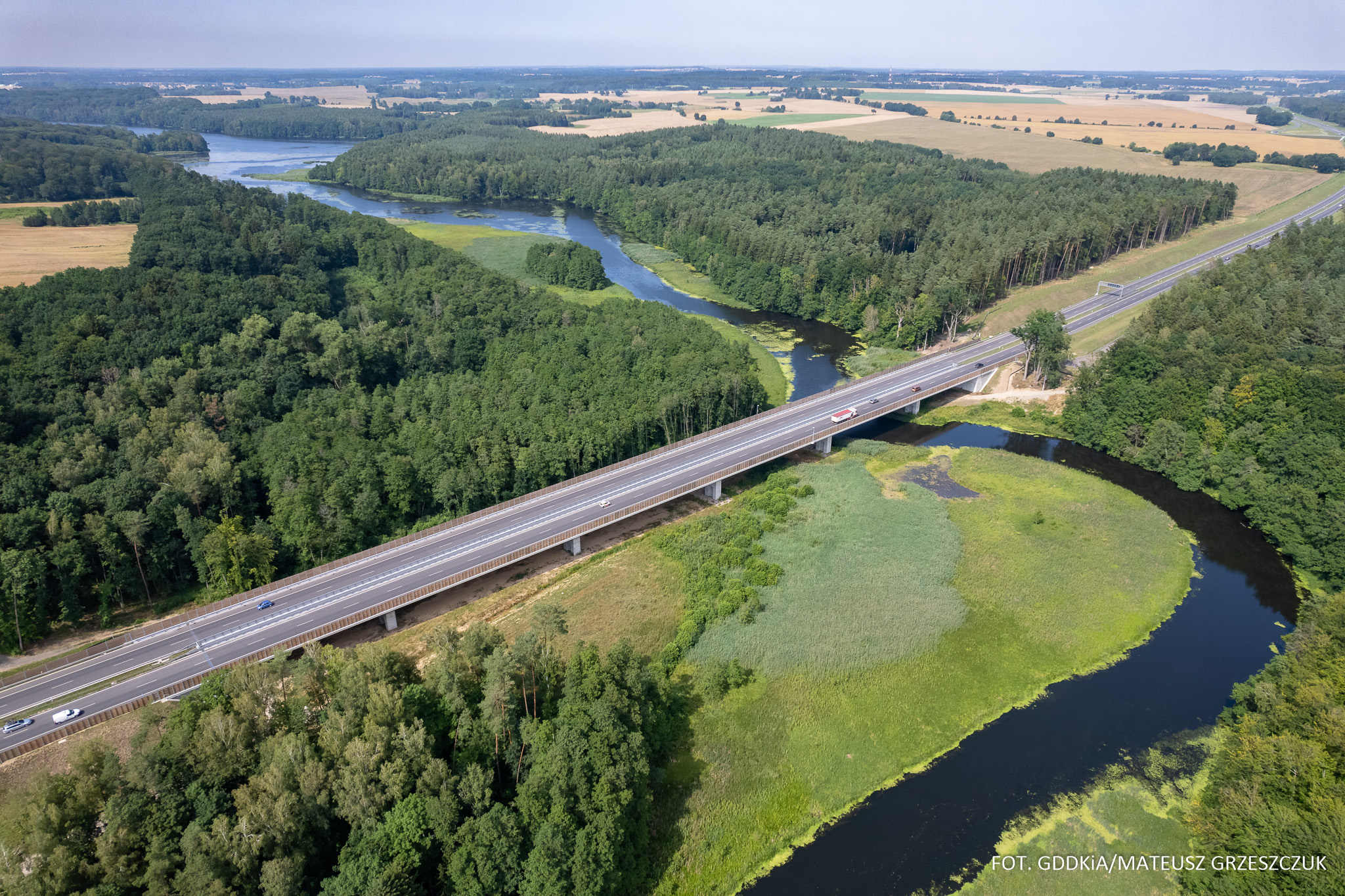 Zrealizowana w latach 2008-2010 jednojezdniowa trasa, z docelowym układem węzłów, jest obecnie rozbudowywana o drugą jezdnię na odcinku o łącznej długości ok. 9,5 km. Obecnie trwają prace na różnych frontach robót m.in. przy układaniu podbudowy jezdni, uzupełnianiu poboczy czy też prace na MOP-ie. Aktualny rzeczowy stopień zaawansowania robót wynosi ok. 21 proc. Wartość inwestycji prowadzonej przez Strabag to ok. 128 mln zł, a z pełnowymiarowej trasy kierowcy skorzystają w 2025 r.