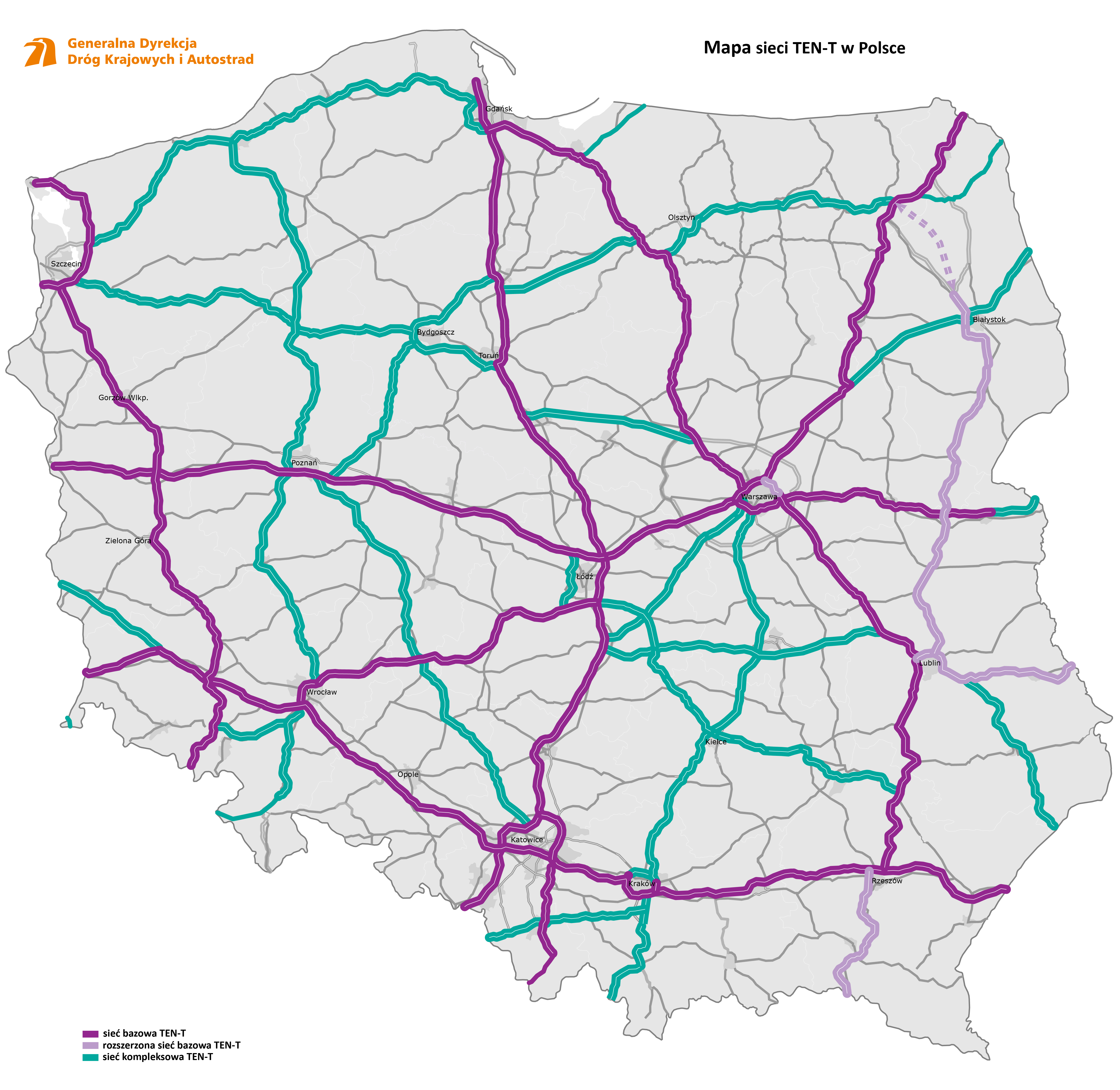 Sieć TEN-T w naszym kraju będzie miała długość ok. 7900 km, z czego sieć bazowa składająca się z połączeń priorytetowych ma długość ok. 3700 km i jest w dużej mierze ukończona. Mamy ją zrealizować do 2030 r.