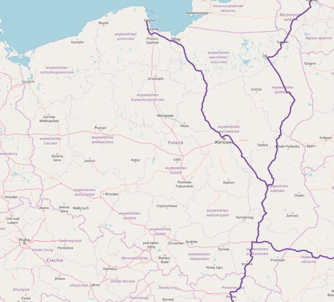 - Morze Bałtyckie - Morze Czarne - Morze Egejskie (w realizacji jeszcze S7 Płońsk – Warszawa, S19 Białystok – Lublin i Rzeszów – granica ze Słowacją, a w przygotowaniu połączenie S61 z Białymstokiem, odcinki S19 od Białegostoku do Denisk oraz S17 WOW).