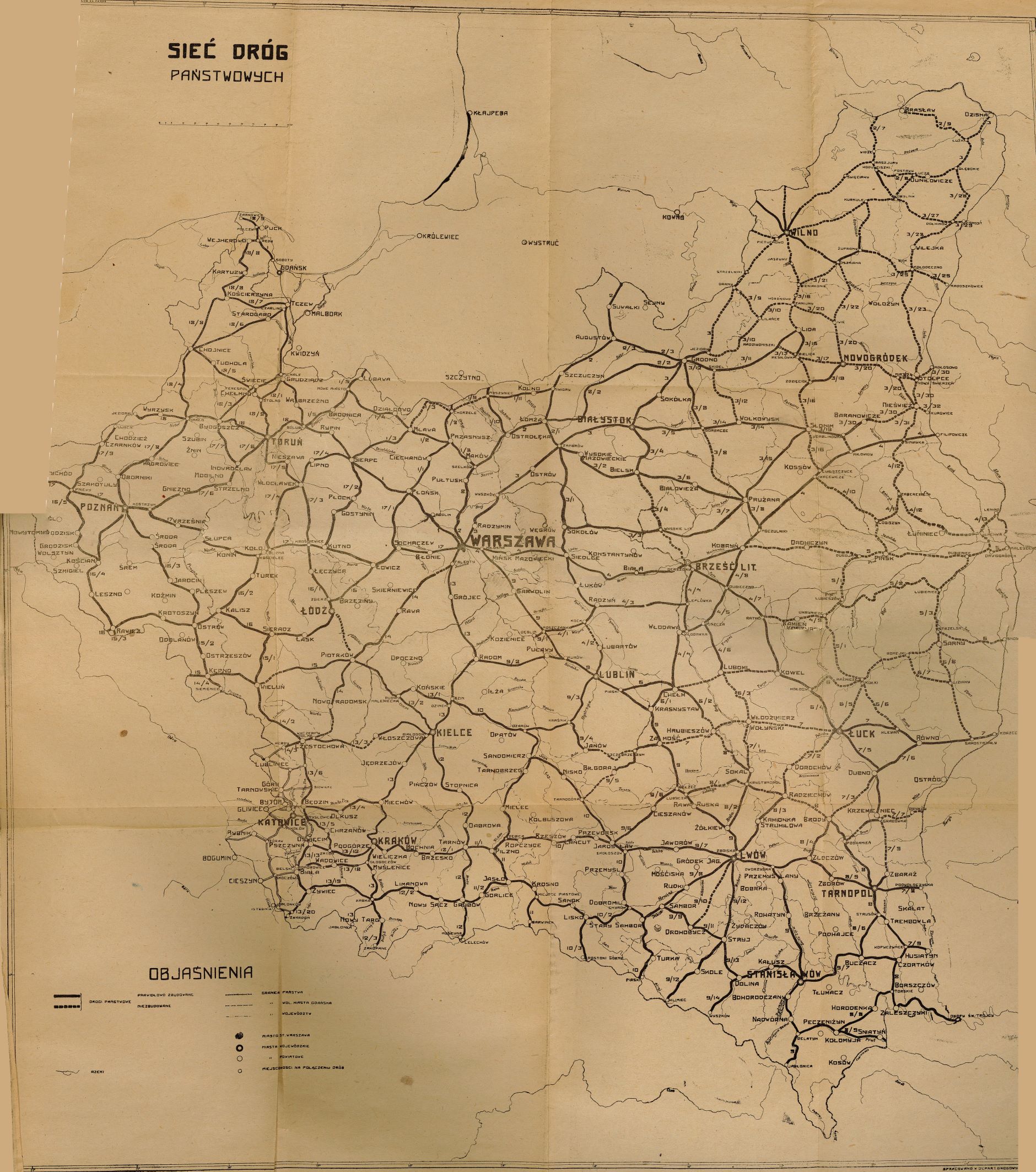 Każdy z zaborców prowadził inną politykę drogową. Po zaborze pruskim Polska odziedziczyła sieć dróg, w której na każde 100 km2 przypadało blisko 30 km dróg utwardzonych. Dla porównania w byłym zaborze rosyjskim wypadało średnio 8,4 km takich dróg na każde 100 km2 – na Kresach Wschodnich było to zaledwie 1,5 km/100 km2. Co gorsza, sieci te nie były ze sobą skomunikowane. Szacowano wówczas, że odpowiednie zagęszczenie i ujednolicenie polskich dróg będzie wymagać budowy aż 75 tys. km nowych tras – w 20-letnim planie z 1923 r. ujęto 60 tys. km dróg. Początki jego realizacji nie były zbyt efektowne: brakowało ludzi, materiałów, nowoczesnego sprzętu (większość prac prowadzono ręcznie i za pomocą maszyn konnych) i przede wszystkim – pieniędzy. Początkowo priorytetem była odbudowa istniejących szlaków – w latach 20. XX w. powstawało ok. 800 km nowych tras rocznie. W kolejnej dekadzie udało się przyspieszyć do 1700 km rocznie.