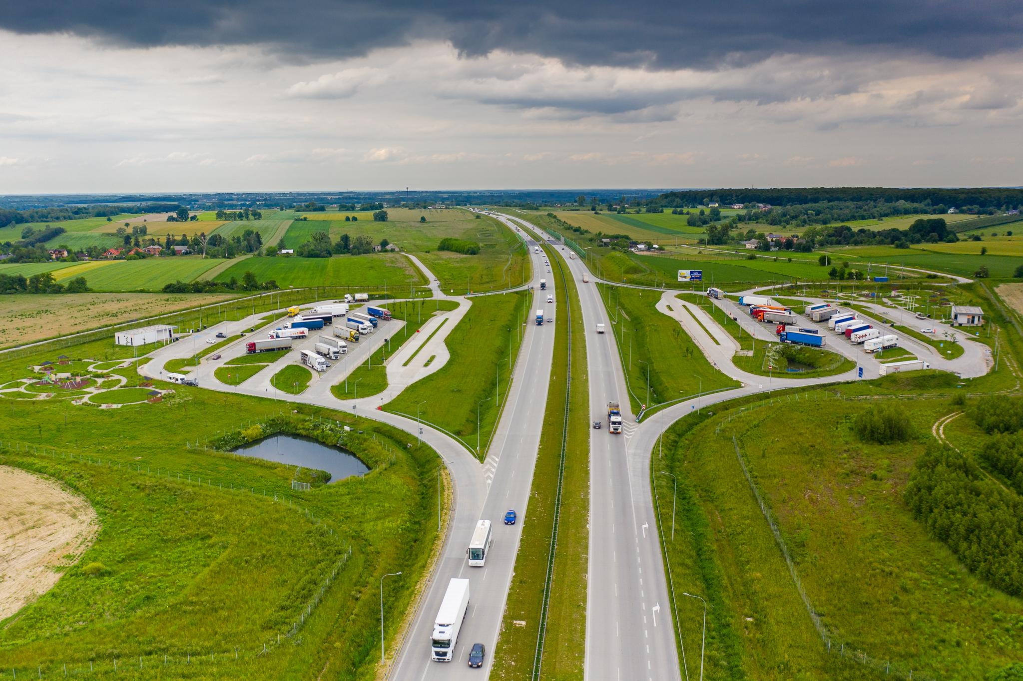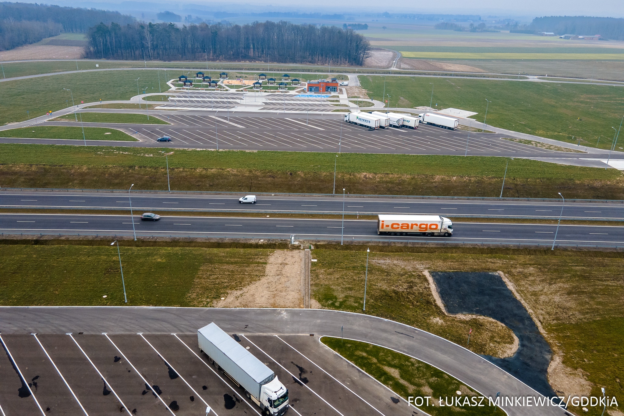 - poprawy jakości wypoczynku kierowców pojazdów ciężarowych na MOP-ach poprzez zmianę układu miejsc parkingowych (miejsca parkingowe budowane są tak, aby kabiny pojazdów usytuowane były tyłem do jezdni głównej drogi A i S),