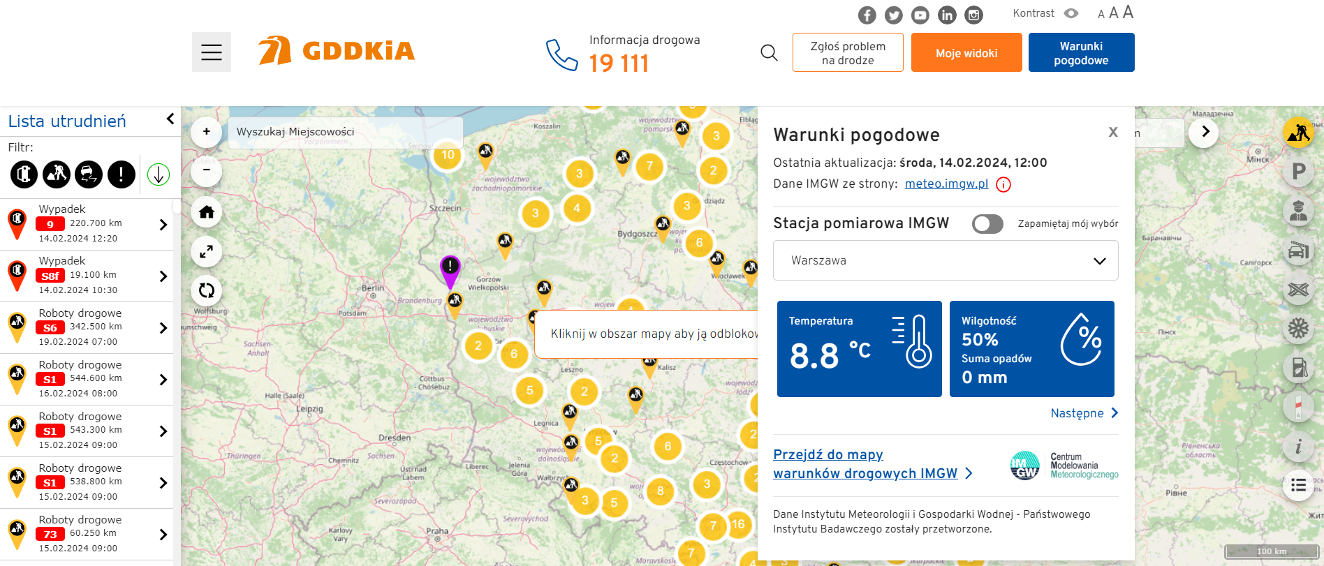 Wychodząc naprzeciw oczekiwaniom kierowców i pasażerów, uruchomiliśmy w 2021 r. serwis dedykowany podróżującym, którzy poszukują informacji mogących sprawić, że zaplanowany wyjazd okaże się bezpieczny i komfortowy. A każdą wyprawę warto rozpocząć od sprawdzenia, z jaką pogodą będziemy mieli do czynienia w trakcie podróży, jak i po dojechaniu do wyznaczonego celu.