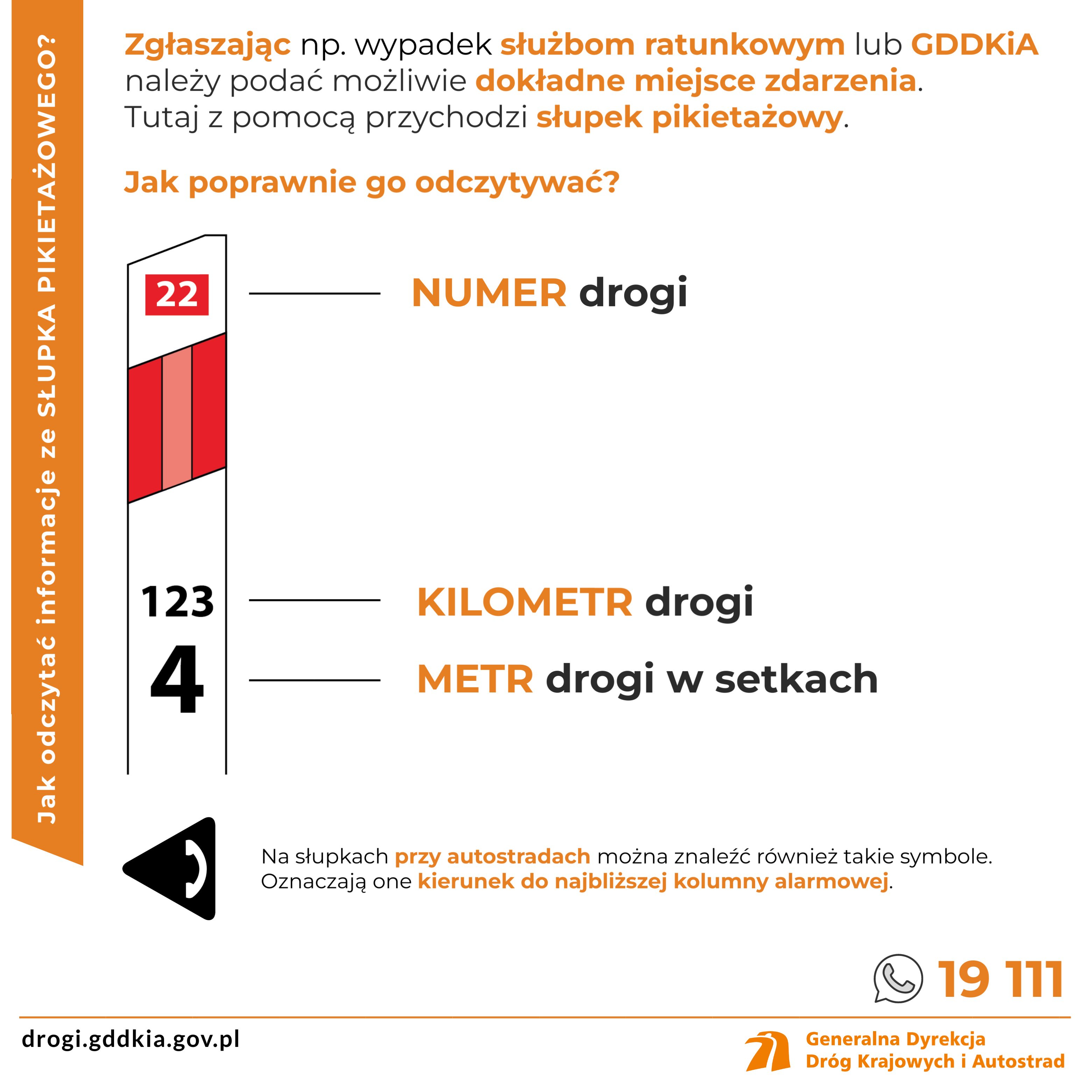 Dzwoniąc pod numer 19 111 możemy nie tylko uzyskać informacje o warunkach ruchu na drogach krajowych, ale również przekazać operatorowi wiadomość, np. dotyczącą uszkodzonych elementów infrastruktury drogowej lub innej sytuacji zagrażającej bezpieczeństwu, którą zauważymy podczas jazdy. W rozmowie z operatorem PID podajmy numer drogi którą jedziemy, lokalizację na podstawie pikietażu ze słupków drogowych oraz kierunek, w którym zmierzamy. Pamiętajmy również, że 19 111 nie jest numerem alarmowym. W sytuacjach nagłych, wymagających interwencji służb ratowniczych, należy wybrać numer 112.