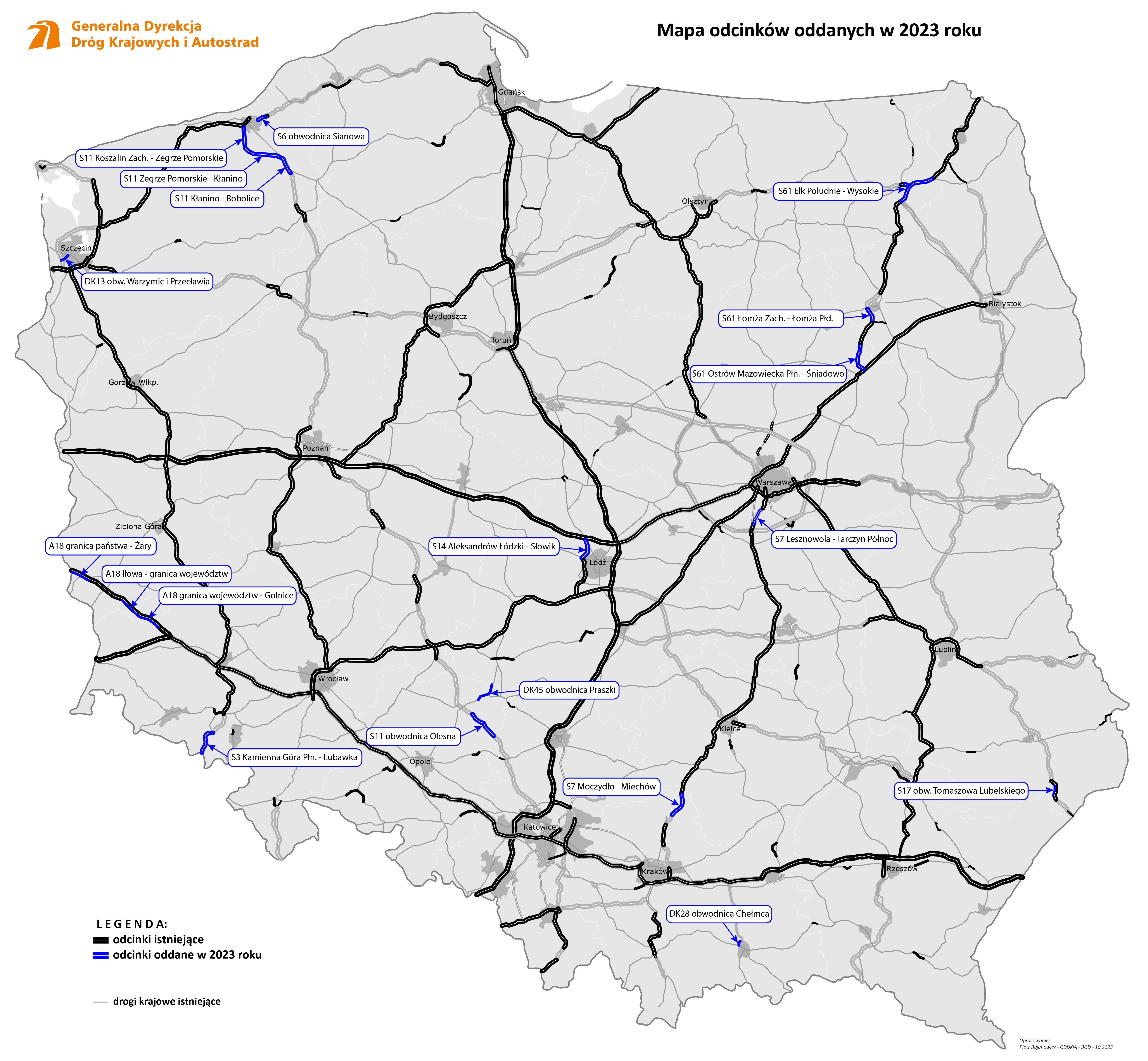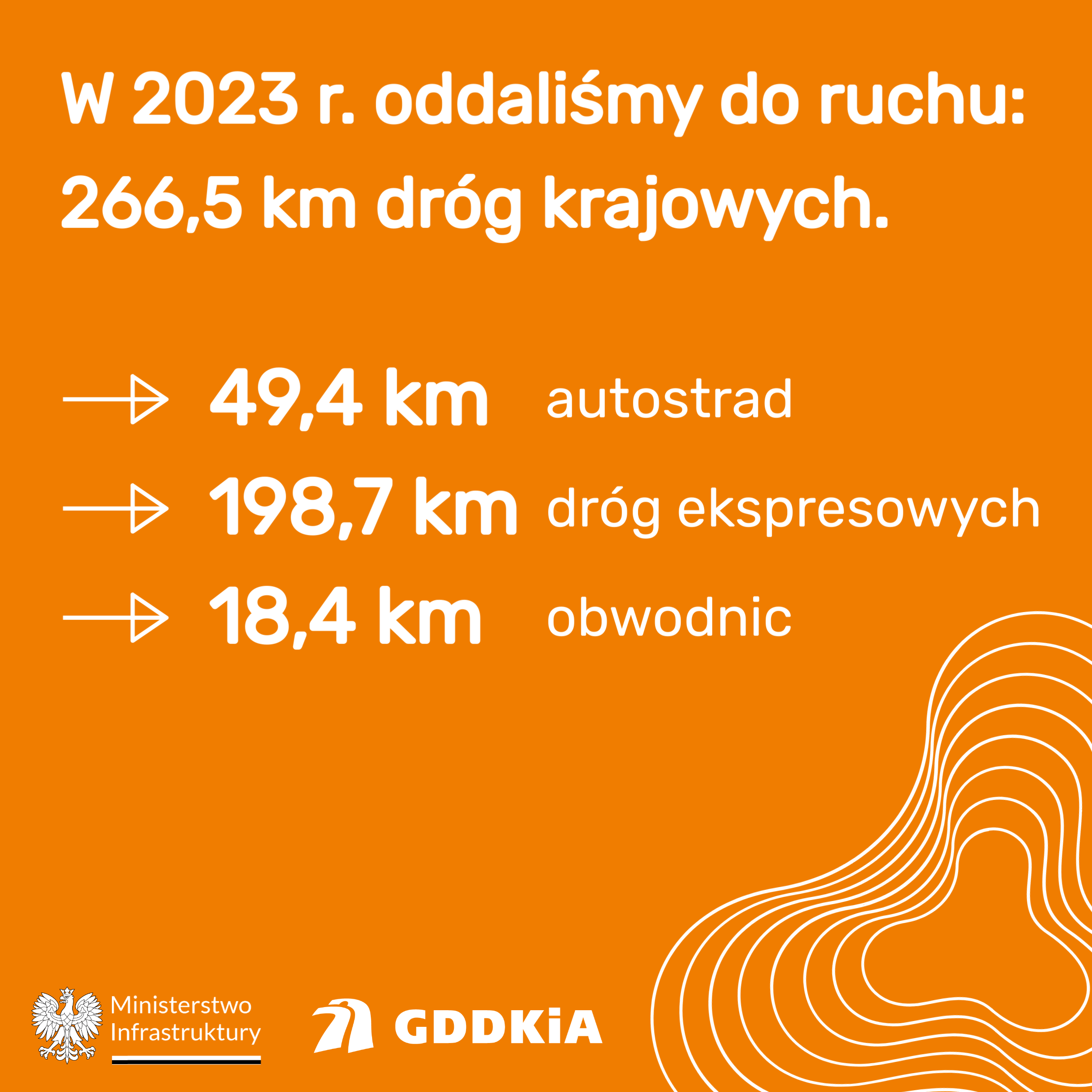 W 2023 r. oddaliśmy kierowcom łącznie 266,5 km nowych dróg, trochę więcej niż zakładaliśmy pod koniec ubiegłego roku: