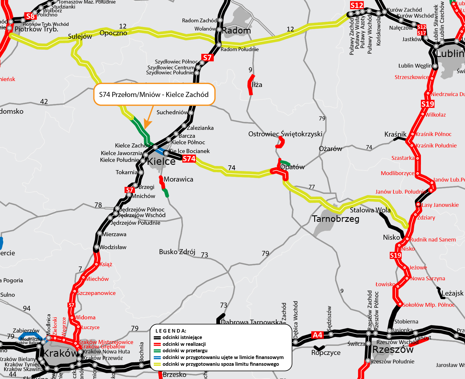 Odcinek Przełom/Mniów - węzeł Kielce Zachód to kolejna, po obwodnicy Opatowa, inwestycja w ciągu drogi ekspresowej S74 realizowana w województwie świętokrzyskim w ramach rządowego Programu Budowy Dróg Krajowych. Inwestycja ma ogromne znaczenie nie tylko dla kierowców podróżujących tranzytem na trasie Łódź - Kielce - Rzeszów, ale kompleksowo rozwiązuje również problem dojazdu ze stref podmiejskich do Kielc.