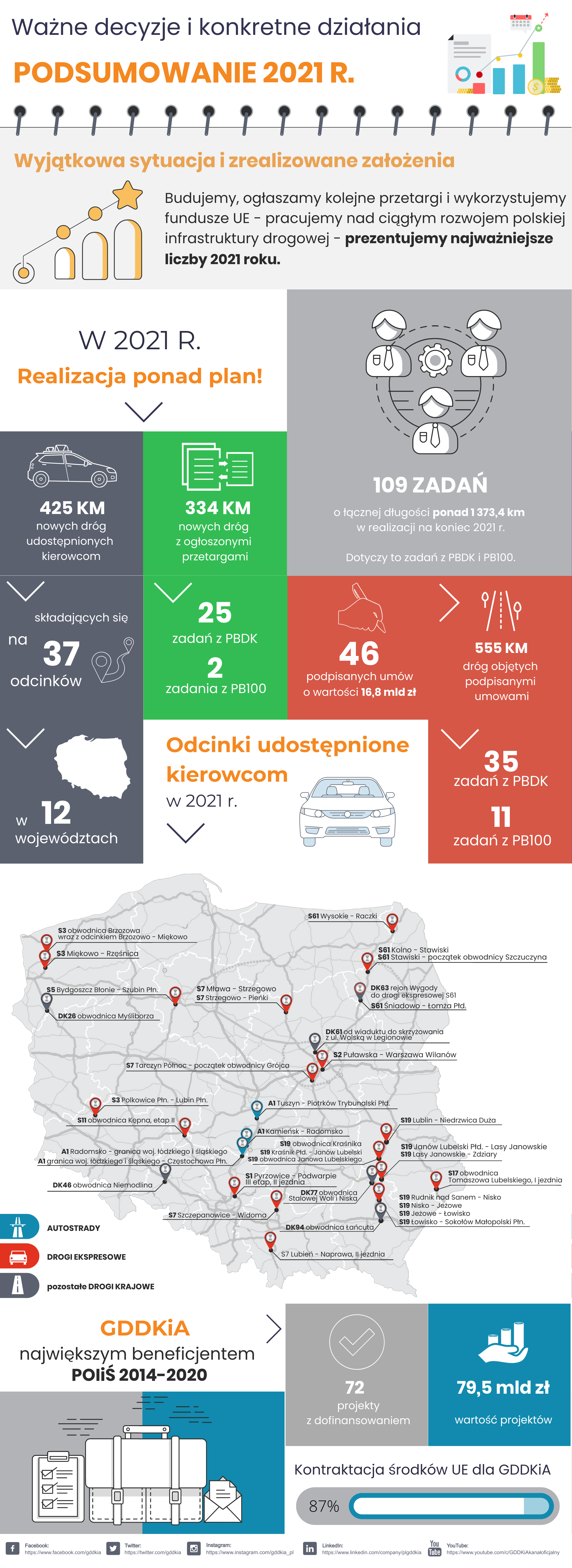 Budujemy, ogłaszamy kolejne przetargi i wykorzystujemy fundusze UE - pracujemy nad ciągłym rozwojem polskiej infrastruktury drogowej - prezentujemy najważniejsze liczby 2021 roku.