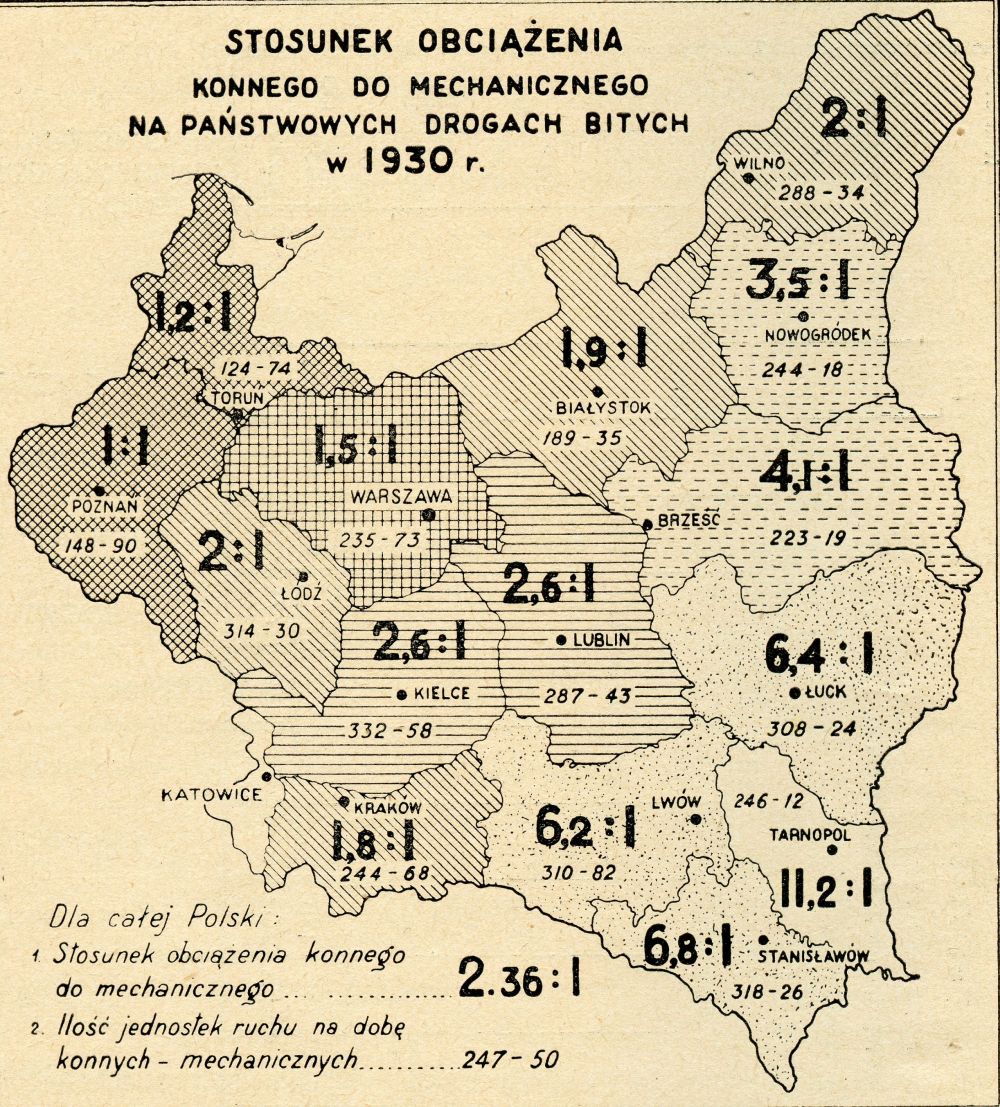 Na całym świecie zaczęto więc przeprowadzać badania ruchu na drogach i ich wpływu na nawierzchnie. Również Polska w tamtym okresie po raz pierwszy przeprowadziła własny pomiar ruchu drogowego, którego zakres i wykonanie zawierała instrukcja opublikowana w okólniku Ministerstwa Robót Publicznych nr XI – 1322 z dnia 4 listopada 1925 roku w sprawie statystyki ruchu kołowego. Zapis pomiaru ruchu rozpoczął się na wyznaczonych odcinkach dróg 2 stycznia 1926 roku o godz. 6 rano i był prowadzany przez 12 godzin do godziny 18. Był to tzw. zapis dzienny. Liczenie powtórzono następnego dnia od godziny 18 do godziny 7 rano i był to tzw. zapis nocny. W ten sposób zrealizowano godzinowy pomiar dobowy. Cały pomiar obejmował przeprowadzenie, na przestrzeni całego roku, jeszcze 14 takich cykli w odstępach 26-dniowych. Cały ciężar pomiarów ruchu spoczywał na dróżnikach, ich zastępcach lub nadzorcach mostów. Dróżnicy do dyspozycji dostali specjalne książeczki, w których kreskami w odpowiednich rubrykach odnotowywali typy przejeżdżających pojazdów. Arkusz zawierał również stosowne dane o lokalizacji punktu pomiarowego oraz rodzaju nawierzchni na badanej drodze.