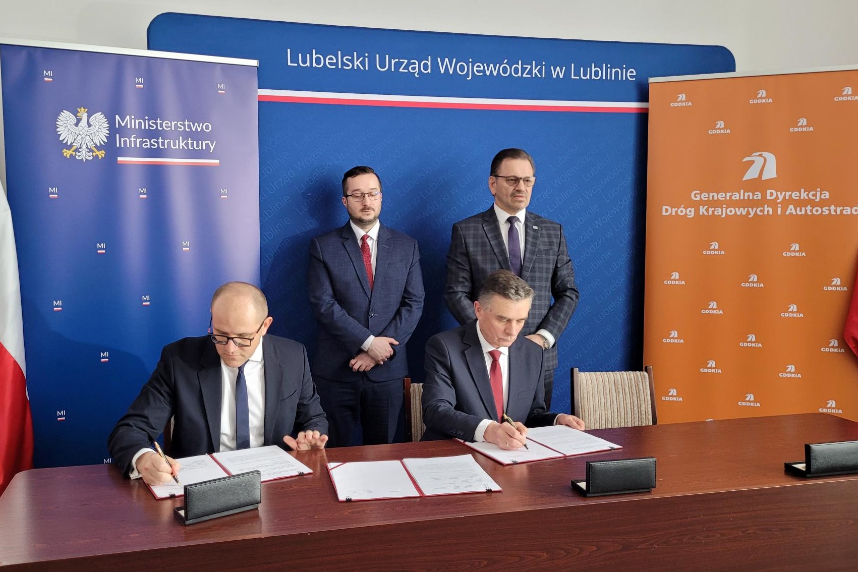 W ramach budowy drogi ekspresowej S12 od Chełma do granicy z Ukrainą zrealizujemy także drogi dojazdowe do obsługi przejścia drogowego w Dorohusku. Dziś porozumienie w tej sprawie podpisali Wojewoda Lubelski Lech Sprawka i p.o. Generalnego Dyrektora Dróg Krajowych i Autostrad Tomasz Żuchowski.