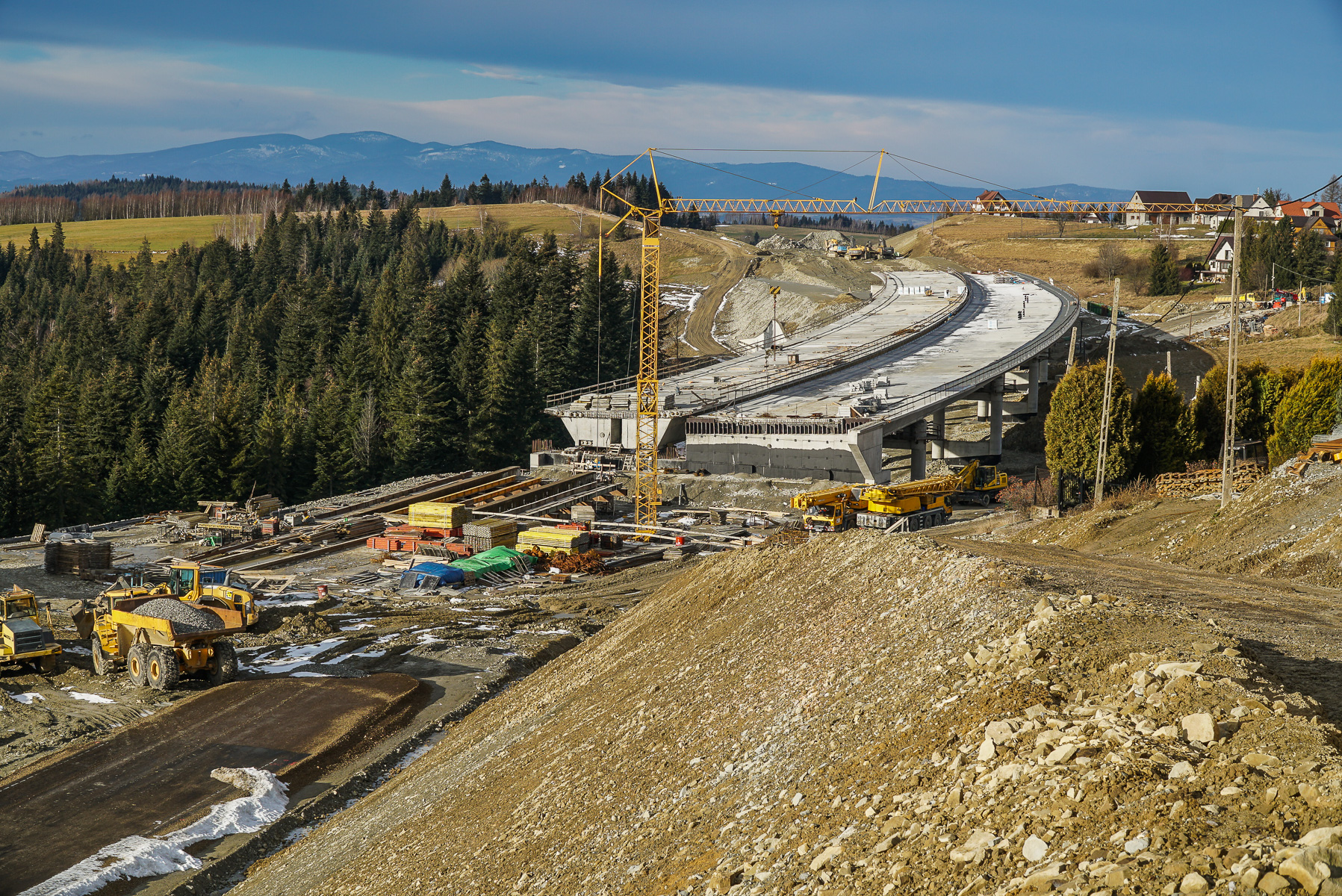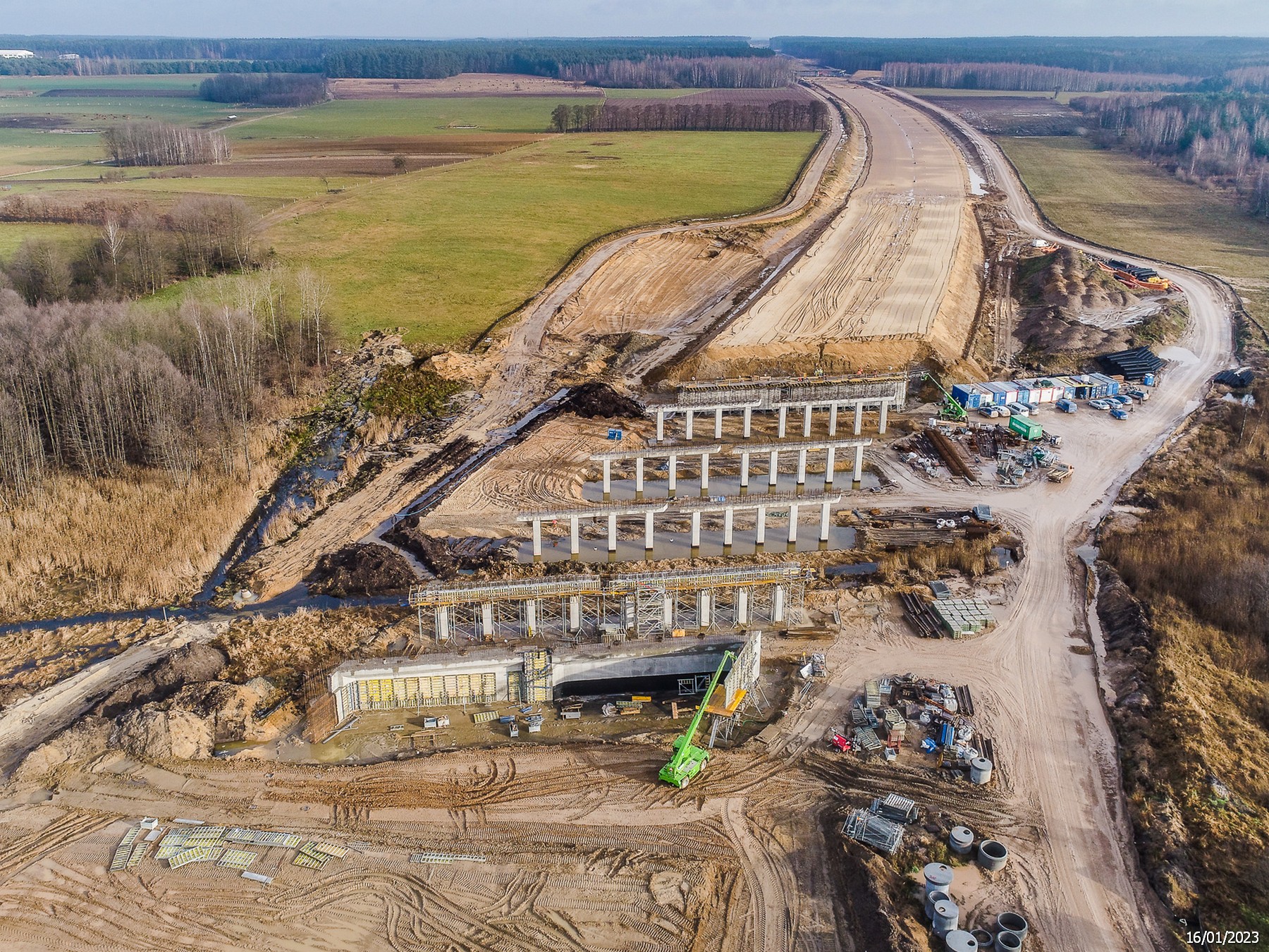 Roboty trwają obecnie m.in. na budowie obwodnicy Łomży w ciągu drogi ekspresowej S61 (woj. podlaskie). Dzięki dobrym warunkom atmosferycznym wykonawca zakończył prace związane z fundamentami, na których oprą się przyczółki i podpory mostu nad Narwią. W woj. małopolskim, na budowie dwujezdniowej obwodnicy Oświęcimia w ciągu DK44, trwa wymiana gruntów, przenoszenie sieci elektrycznej i teletechnicznej a także wykonywanie dróg dojazdowych i pali pod podpory mostu na Wiśle. Na Północnej Obwodnicy Krakowa w ciągu S52 (woj. małopolskie) montowane są zbrojenia i dylatacje na wiaduktach. W tunelach utrzymywana jest odpowiednia temperatura, dzięki czemu w środku wykonywane są zbrojenia, betonowanie i hydroizolacja. Na S7 Widoma - Kraków (woj. małopolskie) trwają prace w branży drogowej i mostowej, a na budowie autostrady A2 Mińsk Mazowiecki - Siedlce (woj. mazowieckie) i Swory - Biała Podlaska (woj. lubelskie) prowadzone są roboty w terenie. Na Mazowszu trwają też m.in. roboty ziemne i na obiektach inżynierskich, w ramach budowy drogi ekspresowej S61 Podborze - Śniadowo.