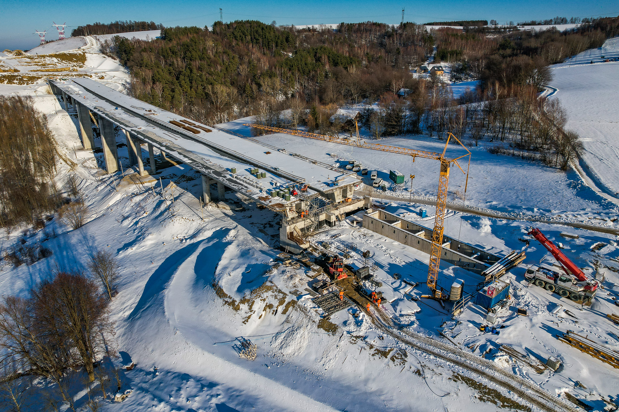 Zima to dobry czas na roboty przy obiektach drogowych. Na budowie obwodnicy Morawicy w ciągu DK73 prowadzony jest montaż konstrukcji pod drugą jezdnię ponad trzystumetrowej estakady. W Sandomierzu trwa natomiast montaż szalunków pod ustrój nośny wiaduktu będącego częścią węzła DK77 i DW723 w prawobrzeżnej części miasta. W ograniczonym warunkami pogodowymi zakresie toczą się też prace na budowie drogi ekspresowej S74 Mniów – Kielce.