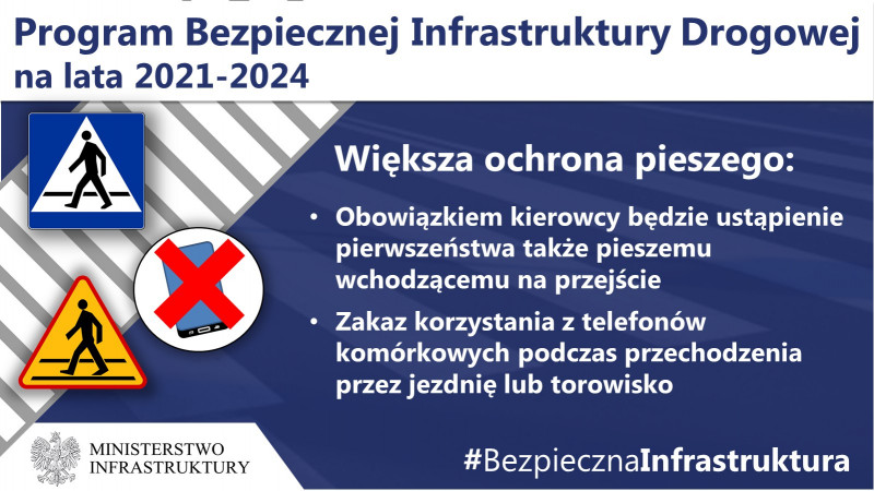 Rada Ministrów przyjęła przygotowany w Ministerstwie Infrastruktury Program Bezpiecznej Infrastruktury Drogowej na lata 2021-2024. Głównym celem Programu jest poprawa bezpieczeństwa ruchu drogowego na drogach krajowych w zarządzie Generalnej Dyrekcji Dróg Krajowych i Autostrad.
