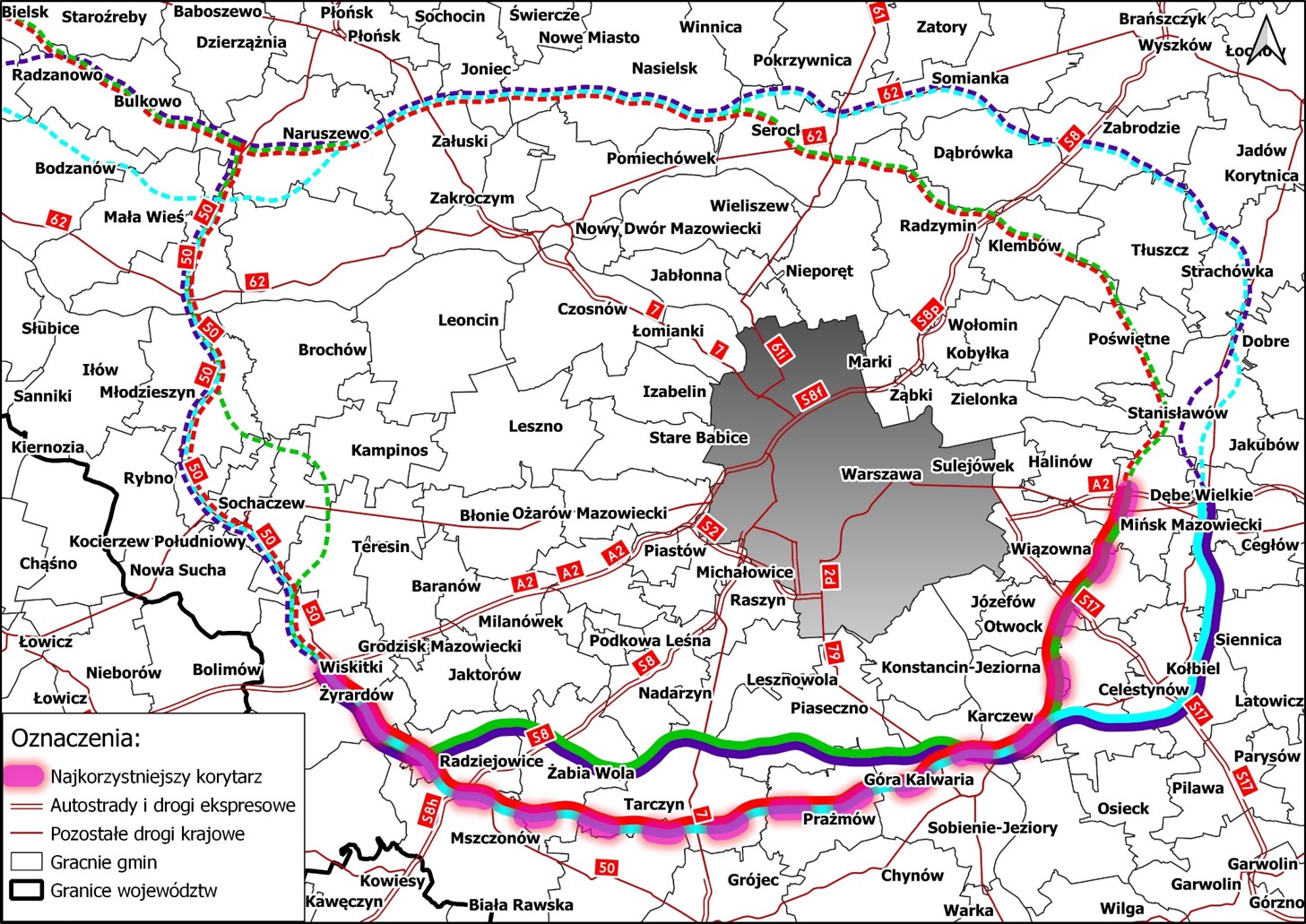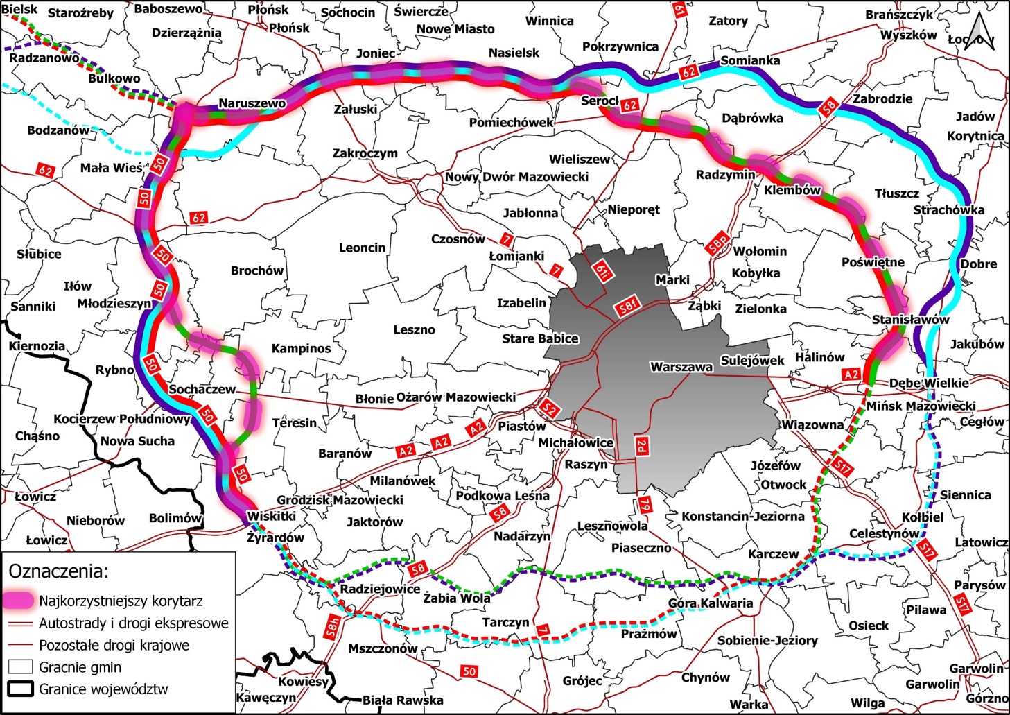 Efektem Studium korytarzowego było wyznaczenie czterech wariantów korytarza dla północnej części Obwodnicy Aglomeracji Warszawskiej w ciągu drogi ekspresowej S50, na odcinku autostrada A2 (Centralny Port Komunikacyjny) - Wyszogród - Serock do włączenia do A2 (Mińsk Mazowiecki).