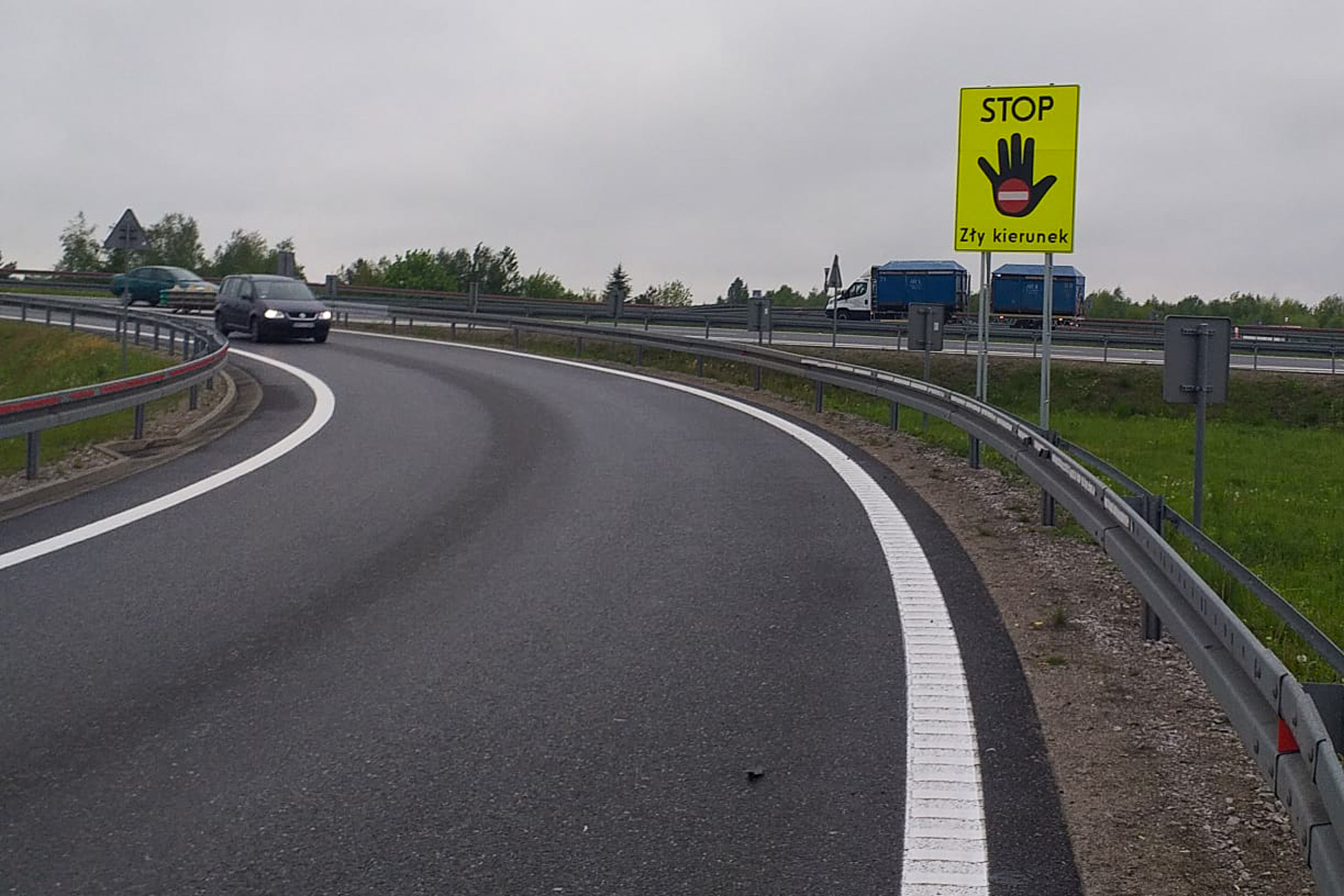 Skorzystaliśmy z rozwiązań stosowanych w Austrii, Niemczech, Słowacji i Chorwacji. Charakterystyczne duże żółte tablice z napisem STOP Zły kierunek i symbolem dłoni z umieszczonym na niej piktogramem znaku zakaz wjazdu, ustawiono już na łącznicy węzła Głogów Południe na S3, a także na węźle Świlcza na S19. Nowe tablice pojawiły się również na autostradzie A4 na węzłach Opole Zachód, Rzeszów Północ i Przemyśl oraz przed granicą Polski z Ukrainą w Korczowej, gdzie zaobserwowano kierowców oczekujących na odprawę i zawracających przed granicą.